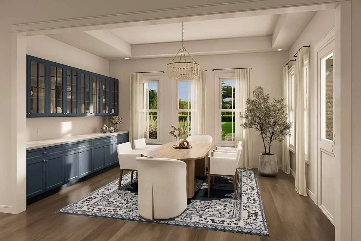 An island anchors the space and creates opportunities for casual seating, while a well-placed walk-in pantry keeps storage practical and organized. Open to the dining area and great room, the kitchen supports seamless transition for everyday meals and holiday gatherings.6