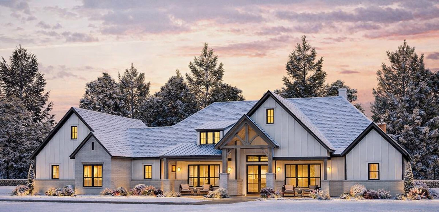 A reasonable estimated U.S. build cost for a modern farmhouse of this size typically ranges from $825,000 to $1,240,000 USD, depending on factors like region, finishes, roof complexity, and site conditions. This estimate generally focuses on the home’s construction itself; land, permits, site work, utility hookups, driveways, and landscaping are usually additional expenses. Premium exterior materials, upgraded interior finishes, or full bonus room build-outs can increase the cost toward the higher end of the range.14