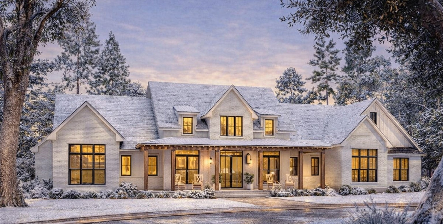 A reasonable estimated U.S. build cost for a home of this size and design quality generally ranges from $900,000 to $1,350,000 USD, depending on region, roof complexity, finishes, site conditions, and foundation choice. This estimate focuses on constructing the home itself; land, permits, site work, driveways, utility hookups, and landscaping are usually additional expenses. Premium interior finishes, outdoor kitchen appliances, and bespoke exterior details will increase the final cost toward the upper end of the range.11