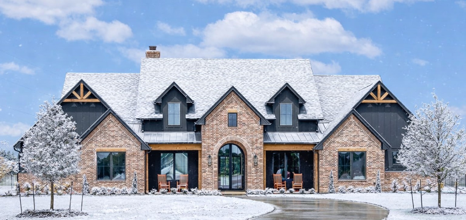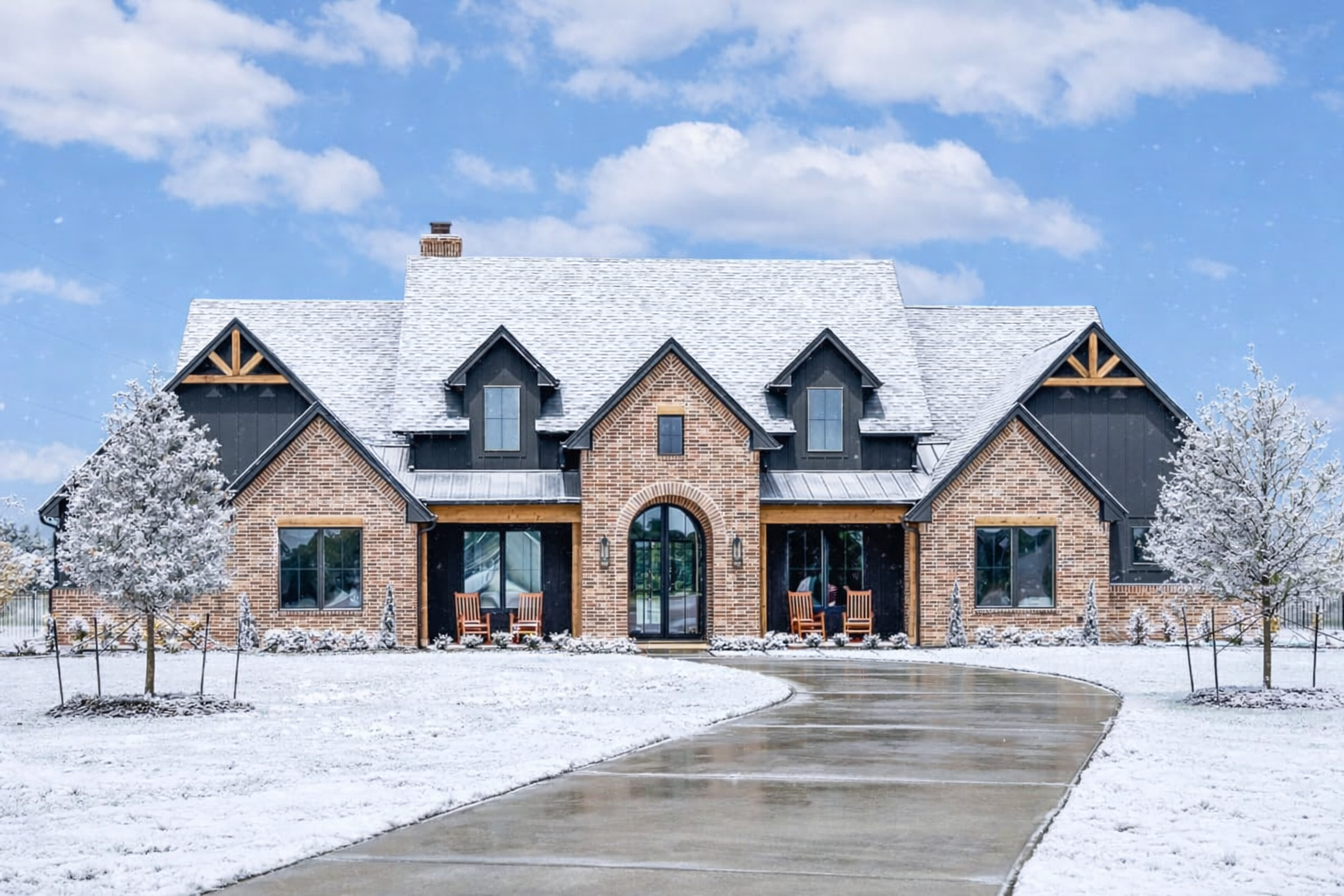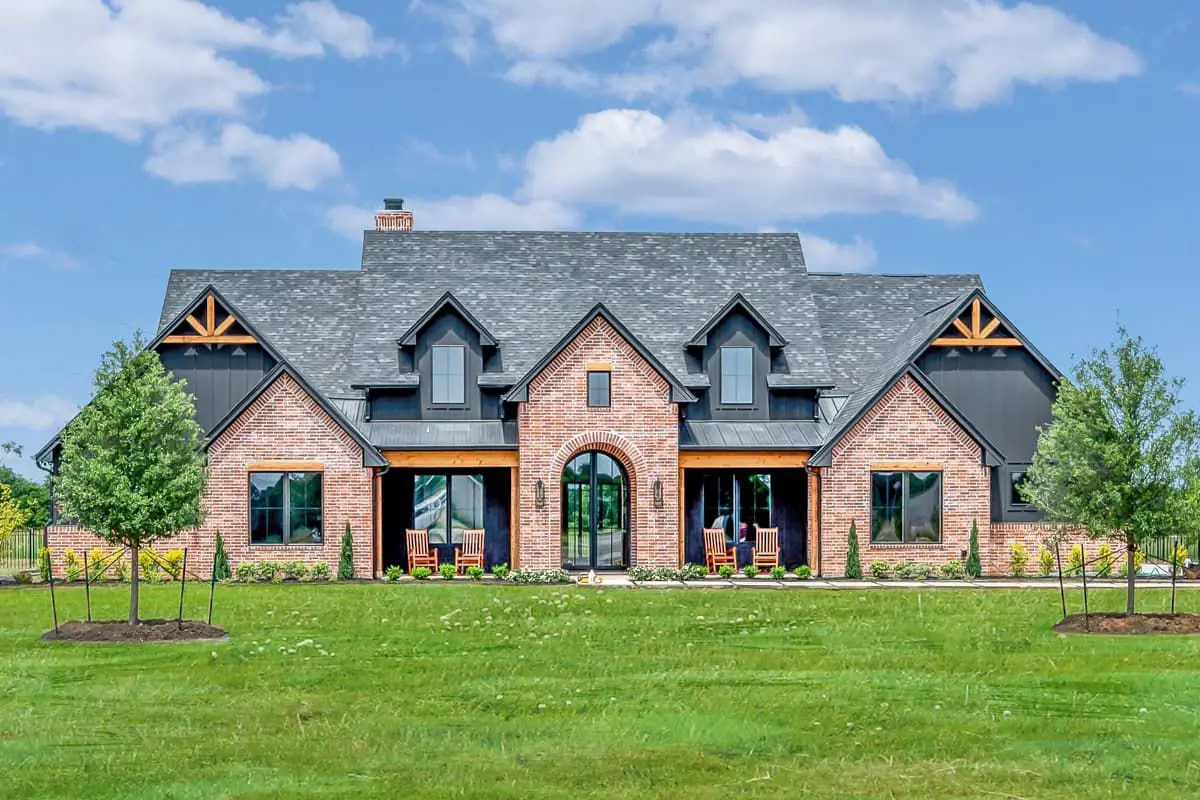 Its exterior blends brick, wood, and metal elements in perfect symmetry, giving the home a timeless yet modern presence. Inside, thoughtful layout choices create a warm, connected environment that makes daily living and entertaining a joy