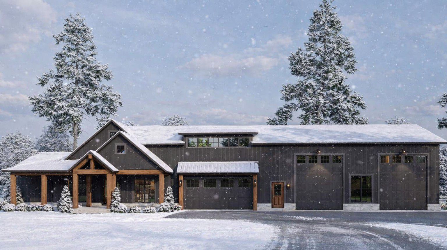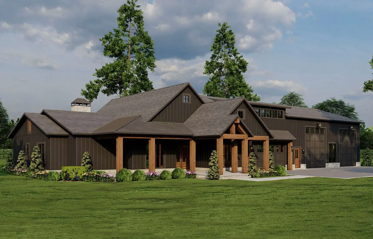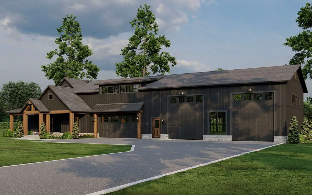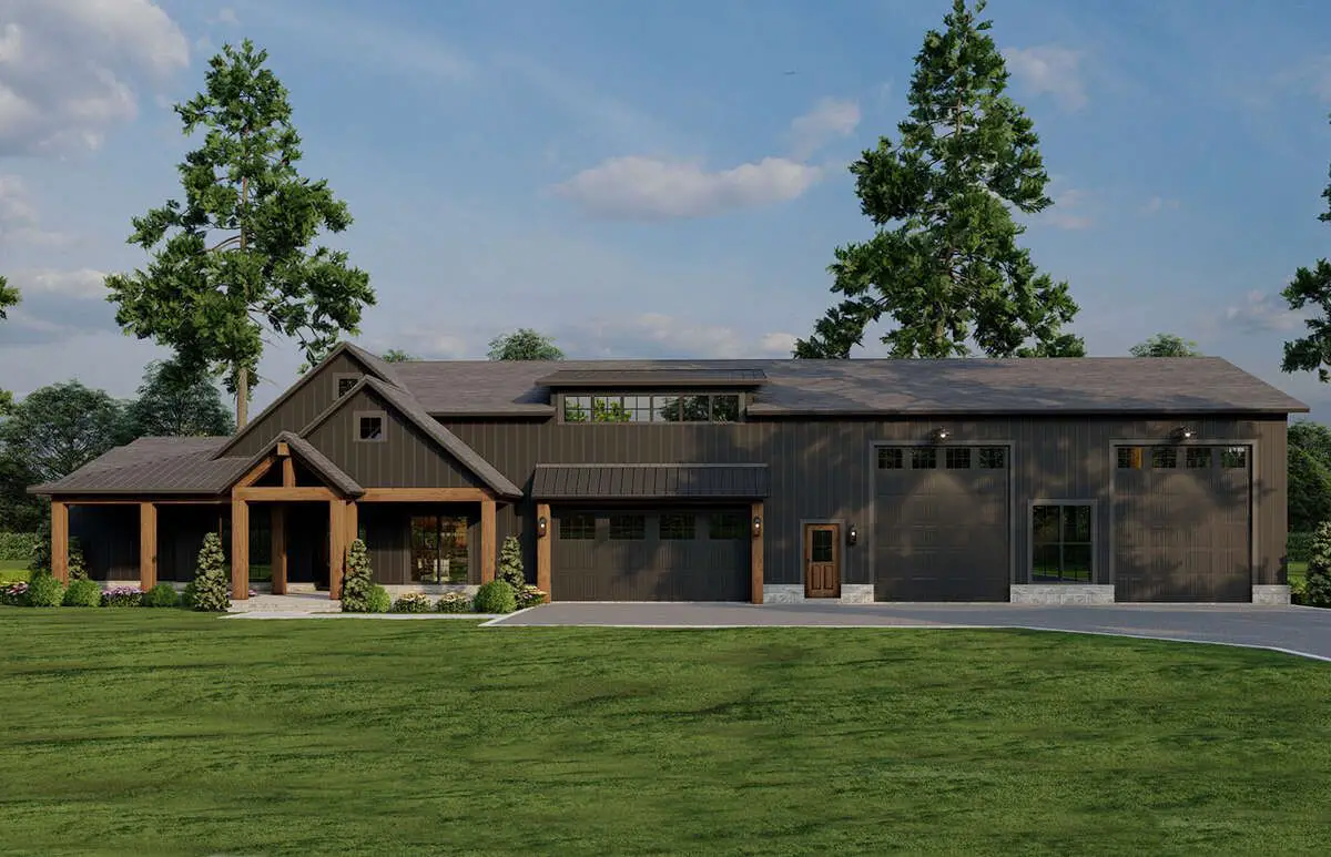 Expect a clean, barn-inspired silhouette that looks right at home on open land, a wide suburban lot, or anywhere you want that modern-rural vibe. The real showstopper, though, is balance: living spaces on one side, an oversized garage wing on the other. It’s the kind of curb appeal that quietly says, “Yes, I’m practical… but I also have taste.”