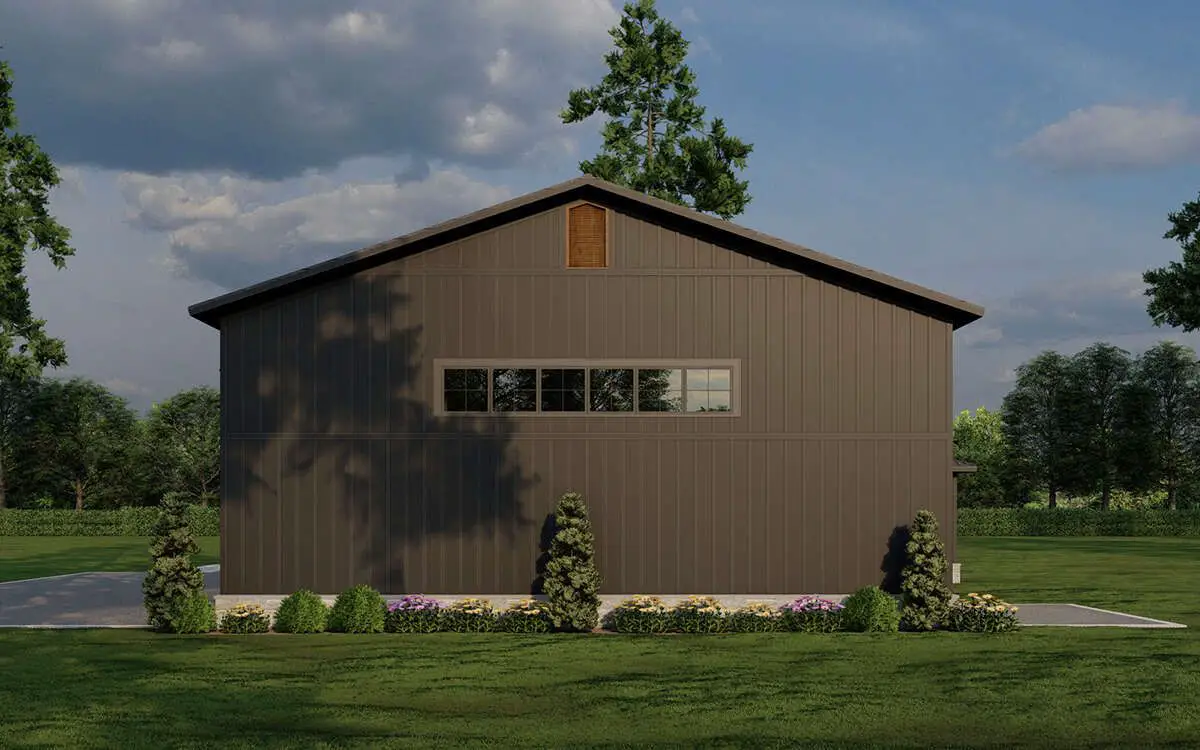 This design wears barndominium style the way it should—confidently and without fuss. The long, low profile gives it a strong presence on the lot, and the overall height of 23′ 2″ keeps things grounded and approachable instead of towering and intimidating.