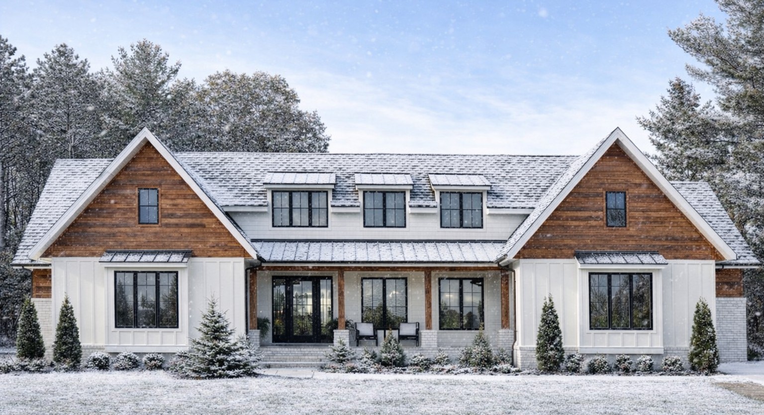 A reasonable estimated U.S. build cost for a home of this size and transitional modern farmhouse style typically ranges from $700,000 to $1,000,000 USD, depending on region, materials, roof complexity, and interior finishes. This estimate focuses on constructing the home itself; land, permits, site work, utility hookups, driveway, and landscaping are generally additional costs. Premium features like custom cabinetry, high-end appliances, or advanced outdoor living upgrades will push the total toward the higher end of the range.“`11