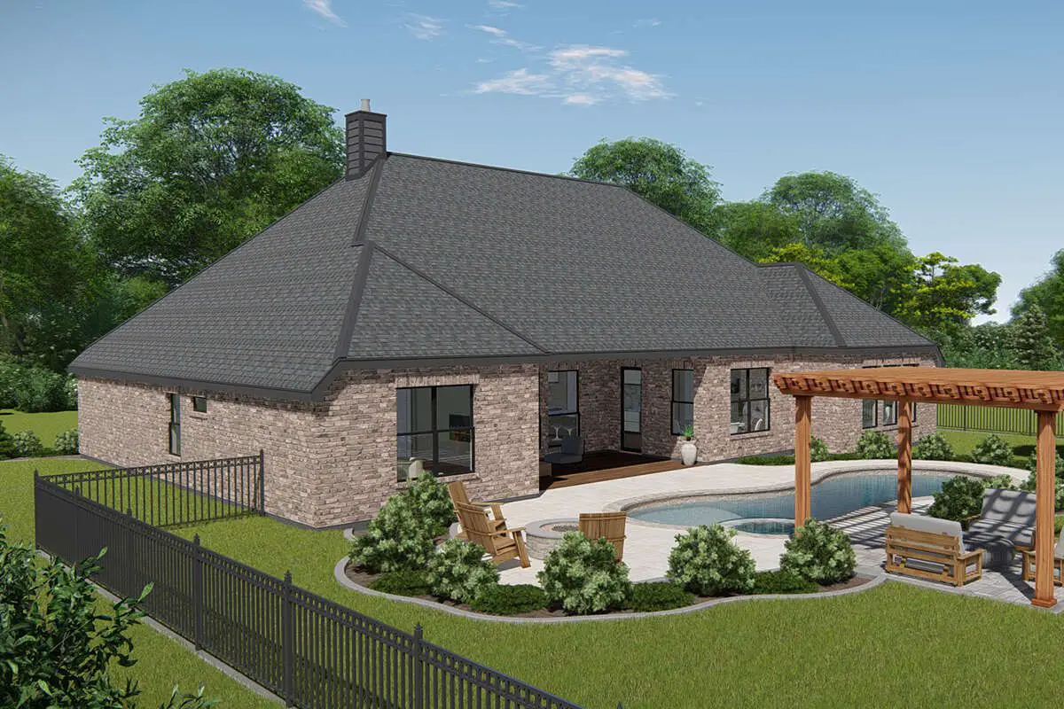 Featuring 4–5 bedrooms, three full bathrooms, generous covered porches, and flexible interior zones, this plan is perfect for growing families, frequent guests, or those seeking adaptable spaces for work and play.