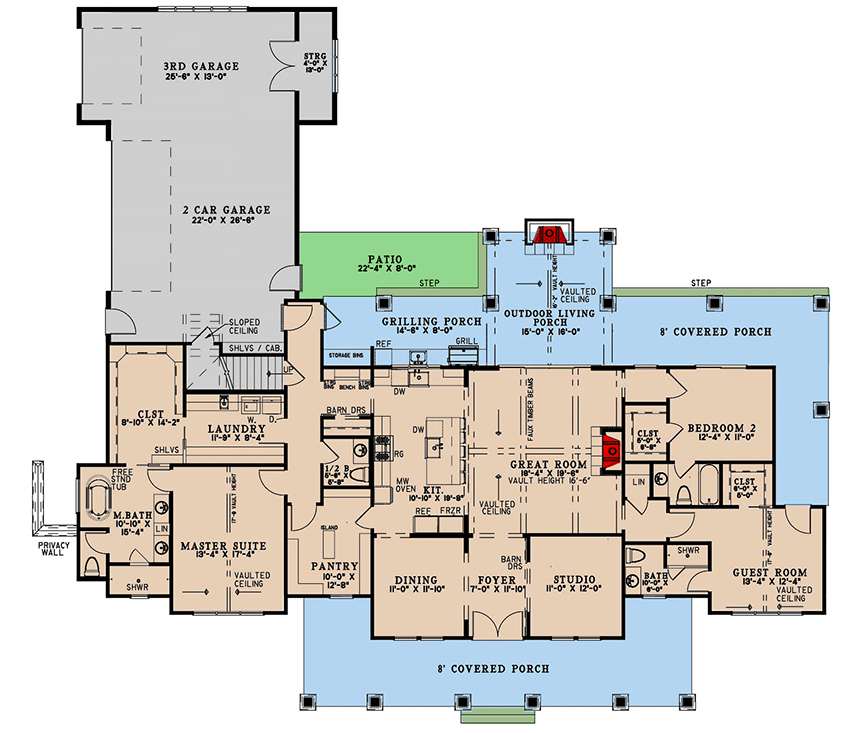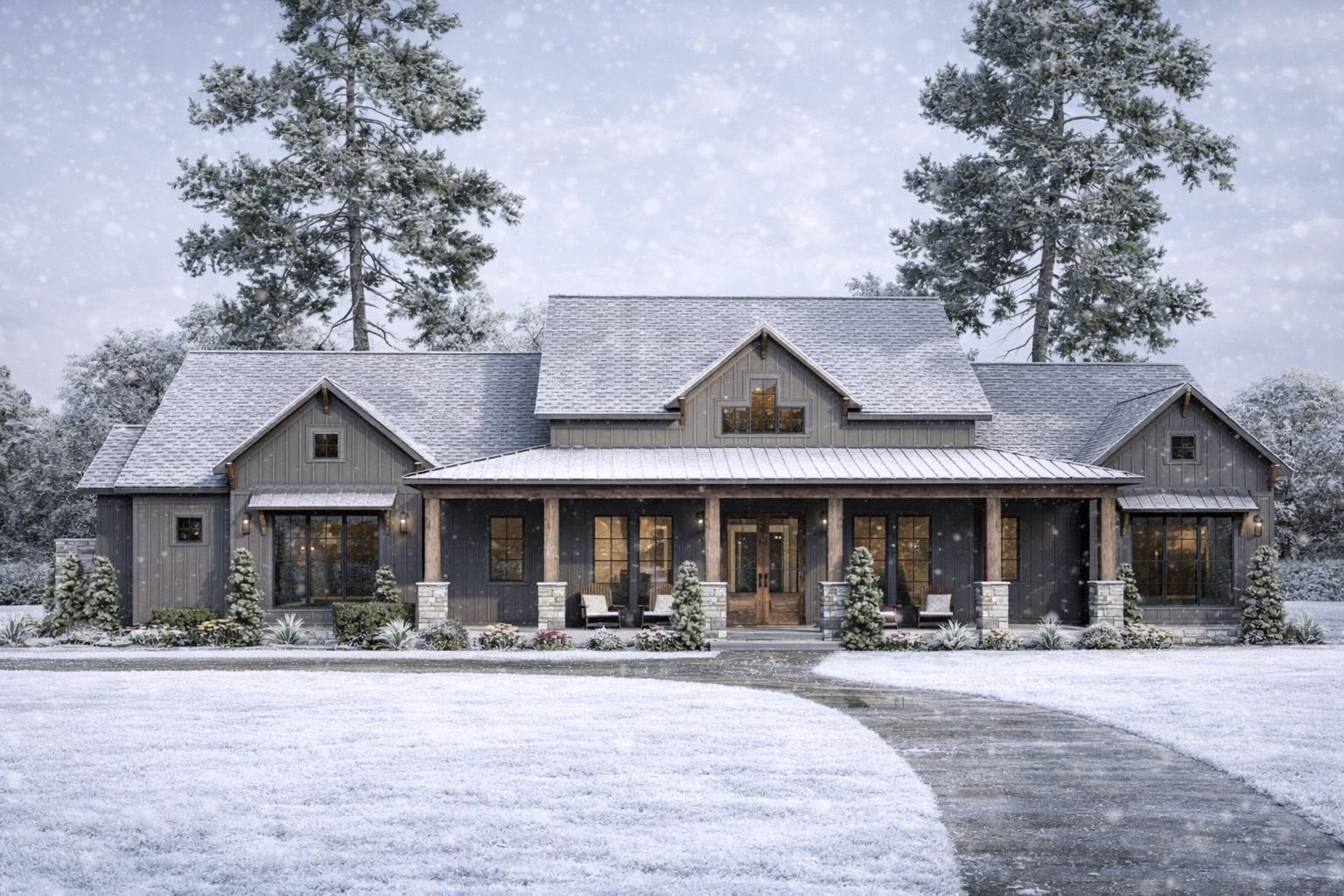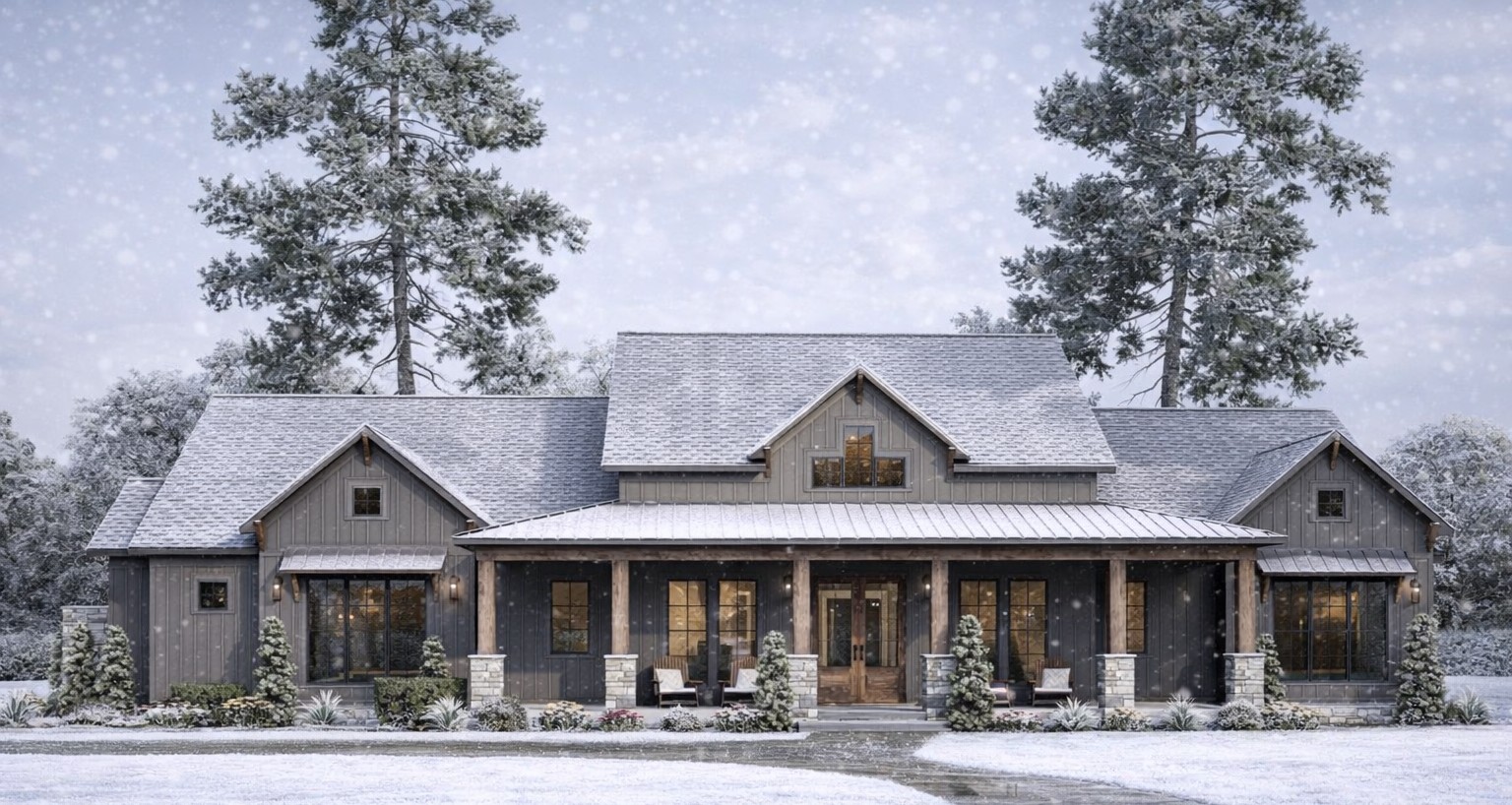 Outdoor living is a key strength of this plan. In addition to the covered front porch, a generous rear porch extends the home’s living space outdoors — perfect for morning coffee, casual meals, or hosting barbecues. These covered outdoor zones make it easy to enjoy fresh air and year-round outdoor comfort.