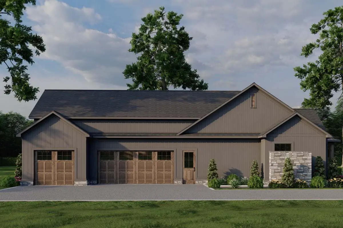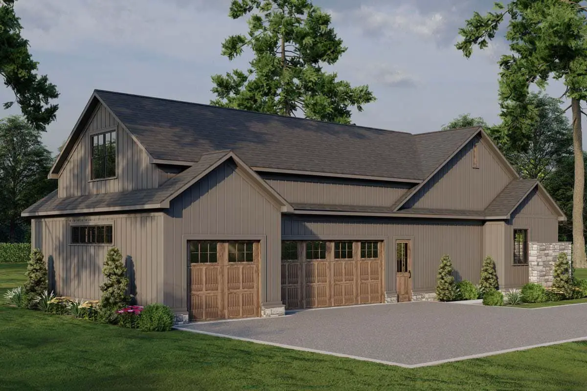 The attached three-car garage (about 900 sq ft) offers plenty of secure parking, storage, and workshop space. Its side-entry placement enhances the clean exterior profile while providing convenient access to the interior. Practical circulation and storage zones help make daily routines feel smooth and organized.