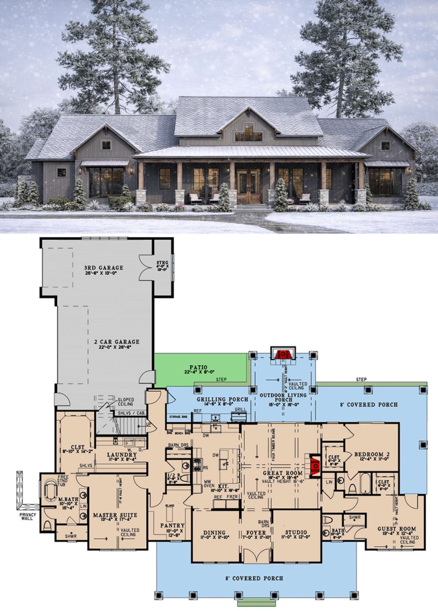 With **three bedrooms**, **two full bathrooms and one half bath**, a **three-car garage**, and a **bonus level above**, it’s perfect for families who want flexible living zones, generous outdoor spaces, and classic farmhouse appeal.