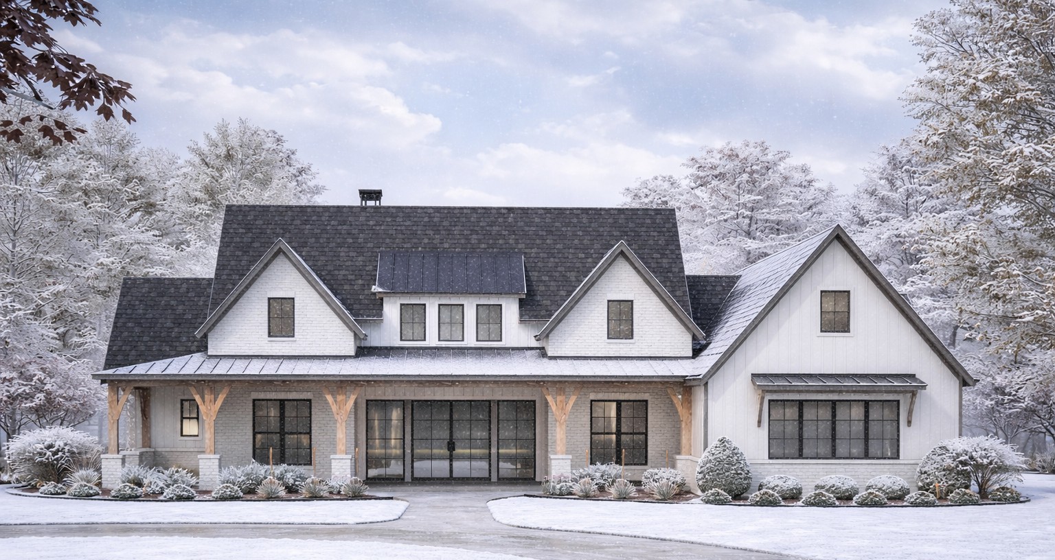 A reasonable estimated U.S. build cost for a home of this size and modern farmhouse style typically ranges from $900,000 to $1,300,000 USD, depending on region, materials, roof complexity, interior finishes, and site conditions. This estimate focuses on the core construction; land, permits, site work, utility hookups, driveway, and landscaping are generally additional expenses. High-end finishes and custom upgrades can bring the total cost toward the higher end of the range.