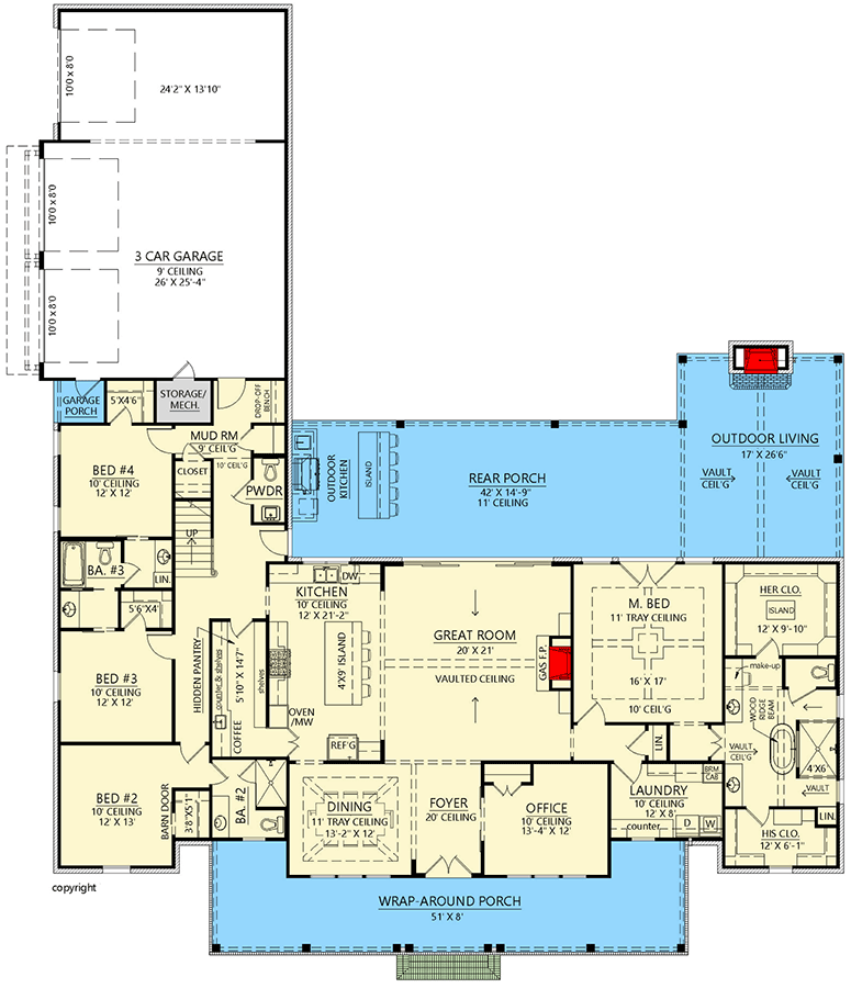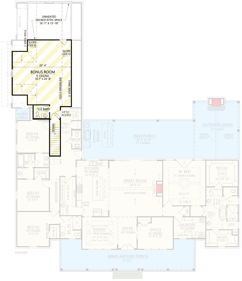 - Main Ceiling Heights: ~10’