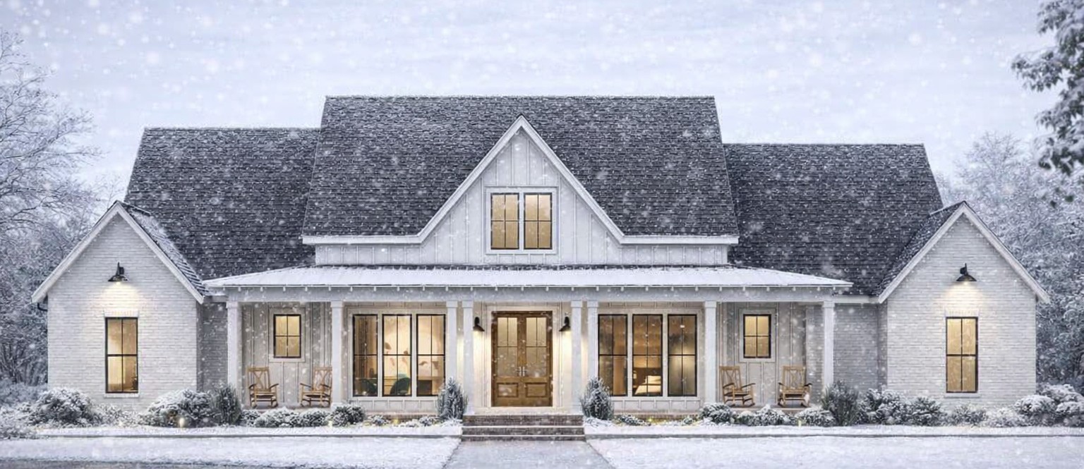 This modern farmhouse plan is perfect for families seeking intentional design that supports both daily life and entertaining. Open living zones and seamless connections between kitchen, dining, and great room areas make day-to-day living feel cohesive. Spacious porches invite outdoor enjoyment year-round, and flexible spaces — including the home office and bonus room — give you room to work, play, relax, or dream big. Thoughtful storage and well-placed transitional spaces help keep everyday routines organized and clutter-free, while private bedroom zones offer peace and quiet at the end of each day.