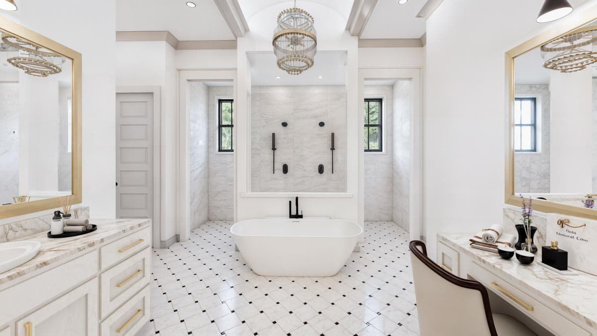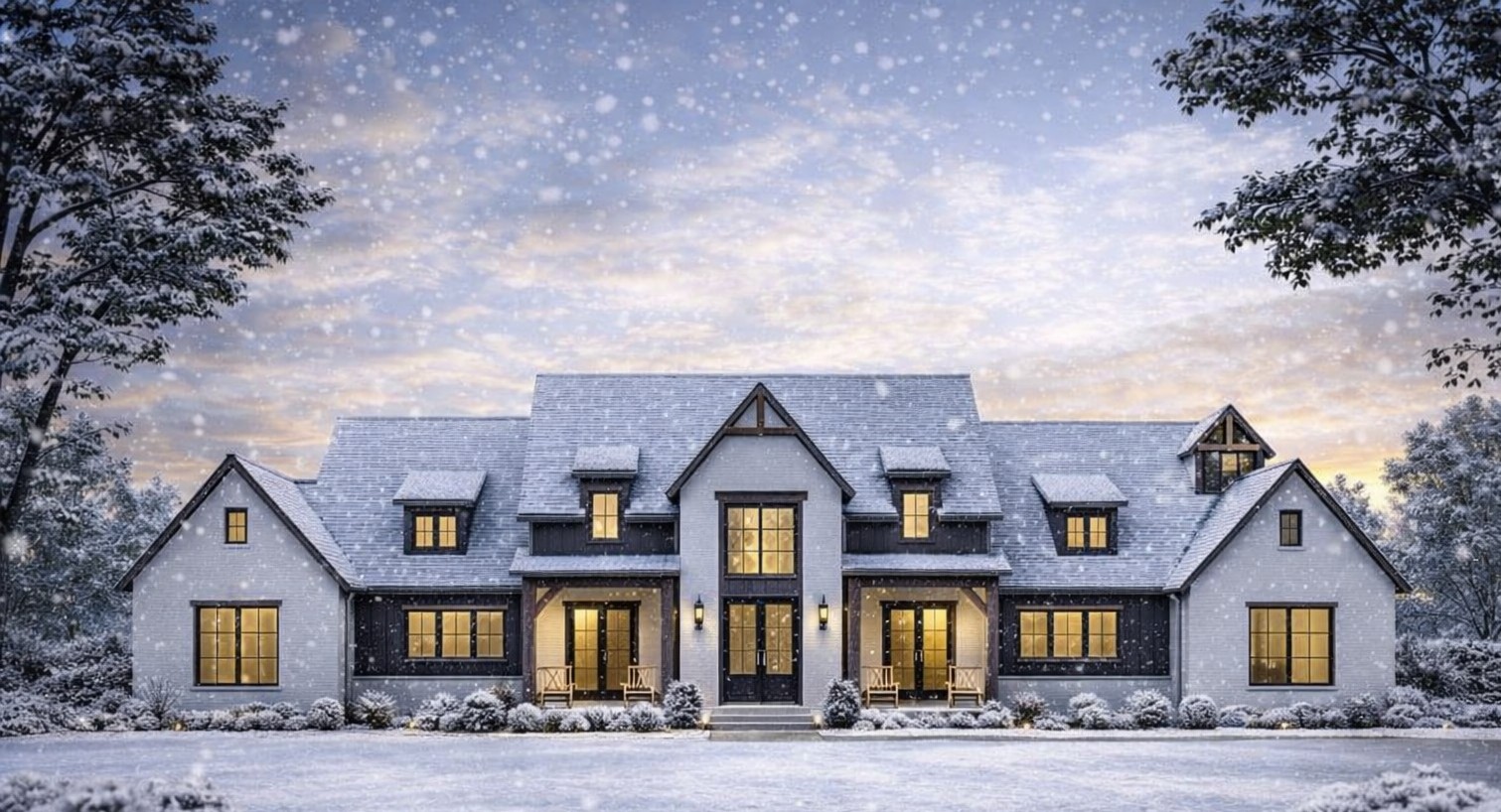 The symmetrical façade evokes timeless appeal with a modern twist, making this plan equally suited to country settings or upscale neighborhoods.