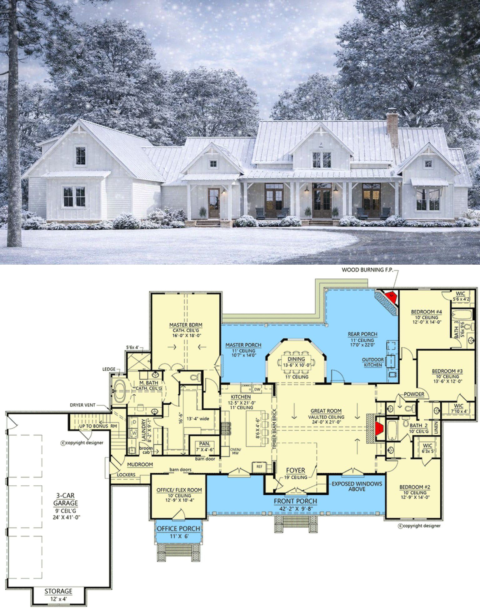 This modern farmhouse plan supports everyday living with well-defined gathering zones, private retreats, and outdoor areas that invite relaxation and connection. Open interior spaces encourage natural interactions between kitchen, dining, and living areas, while flexible rooms — such as an office or media space — adapt to your changing lifestyle needs. Covered porches entice year-round outdoor enjoyment, and practical storage solutions help keep daily routines organized. Whether you’re hosting friends or enjoying quiet family evenings, this design balances comfort and functionality.