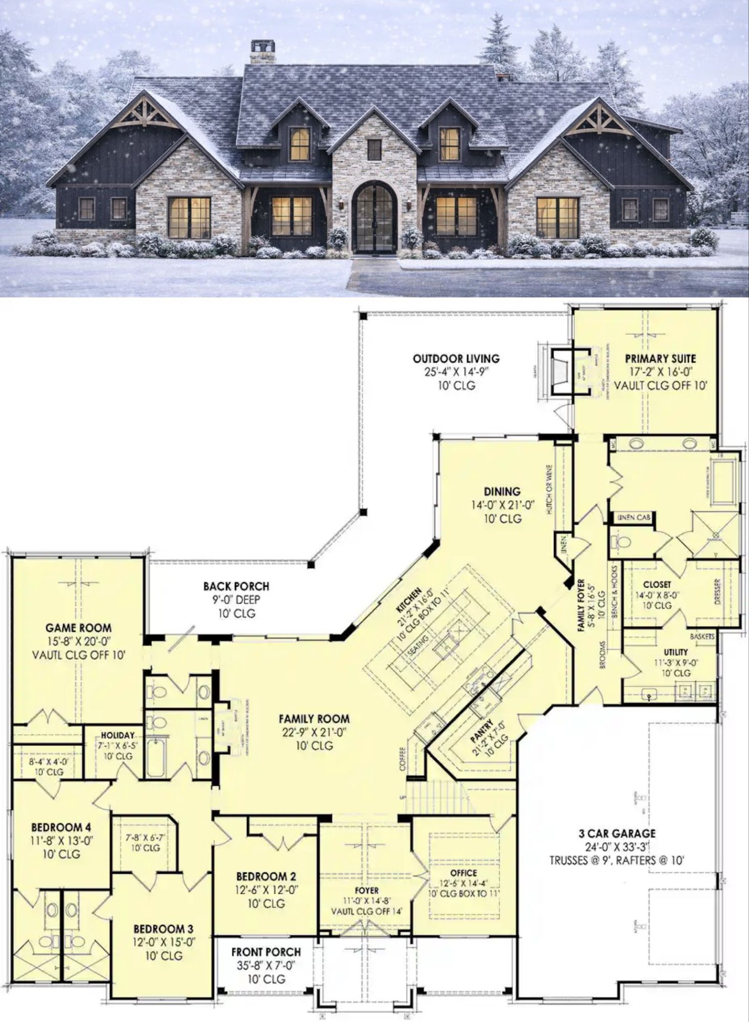 This generous Craftsman home supports everyday life with flexible spaces that adapt to changing needs. The open main living zone encourages connection between kitchen, dining, and living areas, while multiple covered porch spaces invite year-round outdoor enjoyment. Well-placed bedrooms and numerous full bathrooms help minimize morning congestion, and dedicated zones like the home office and mudroom add real-world convenience. Practical storage and thoughtful circulation make this home easy to live in and enjoyable to share with family and friends.