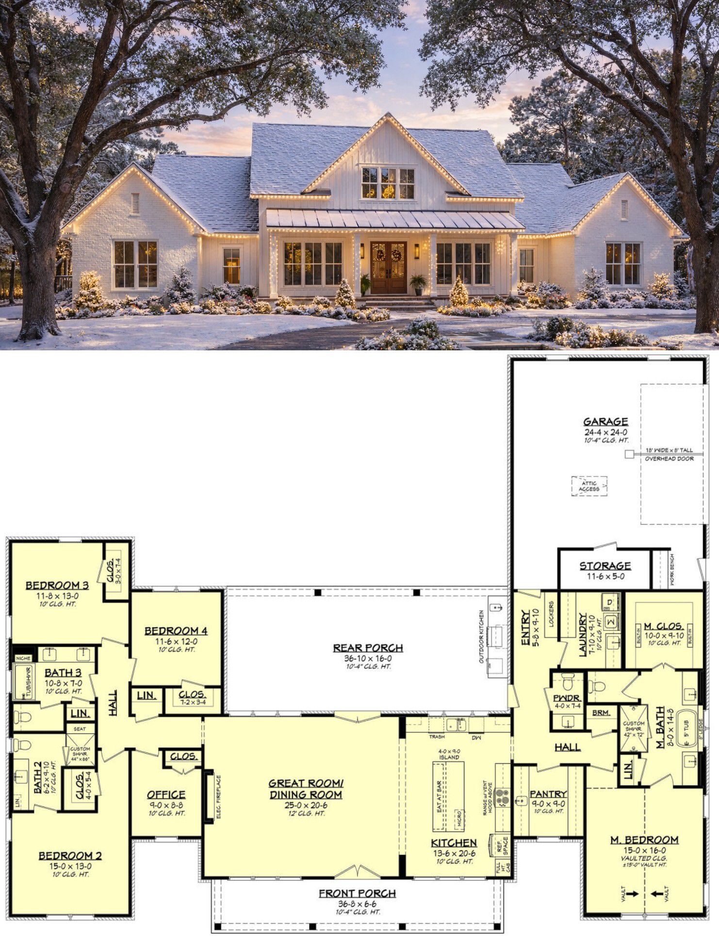 At roughly 89′ 4″ wide and 73′ 4″ deep, the footprint has a confident, substantial stance. The home’s overall height is about 29′, and the roof pitch adds that classic farmhouse drama without going overboard. Translation: it looks good from the street and still feels warm and approachable.
