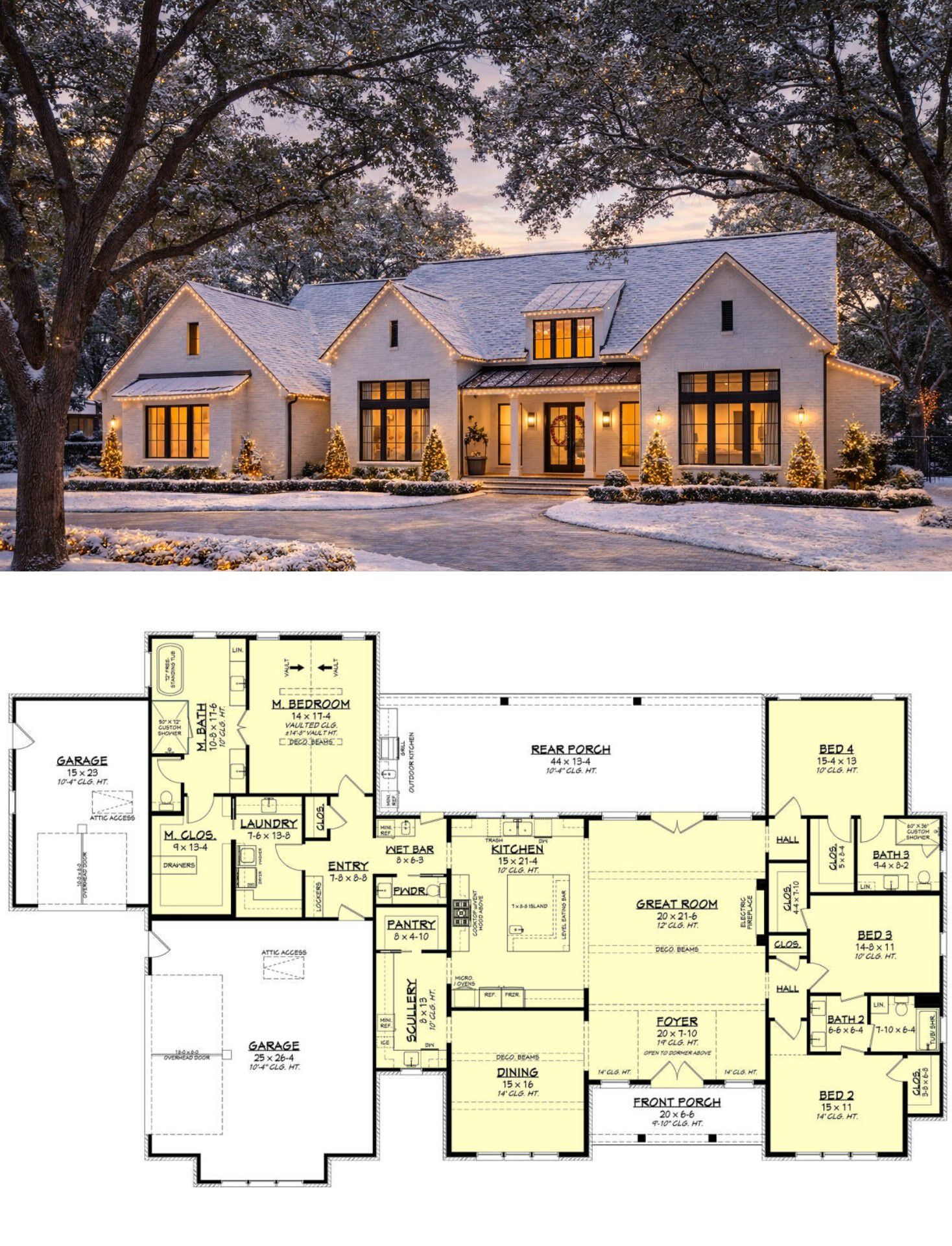 This modern transitional home plan is ideal for families who value open, connected interior spaces with flexible zones for work, play, or quiet retreats. Its central gathering areas make everyday living and entertaining feel natural and fluid, while covered outdoor spaces expand your functional footprint. Practical storage, a dedicated laundry room, and a mudroom help keep daily routines organized, and versatile secondary rooms allow you to adapt the home to your evolving lifestyle. Covered porch areas make it easy to enjoy outdoor living in comfort without sacrificing convenience.