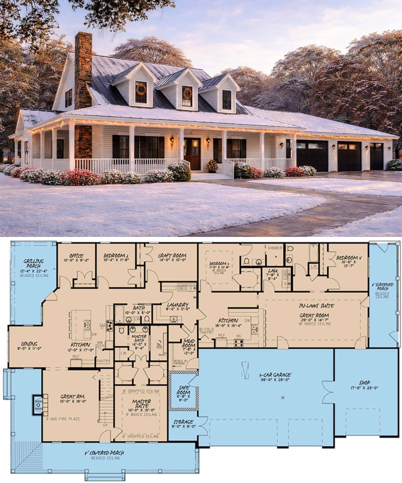 Dedicated storage, a mudroom, and a laundry room help keep daily activities organized and efficient. Bedrooms and adaptable interior spaces allow the home to grow with your family’s changing needs, making this design functional and future-ready.