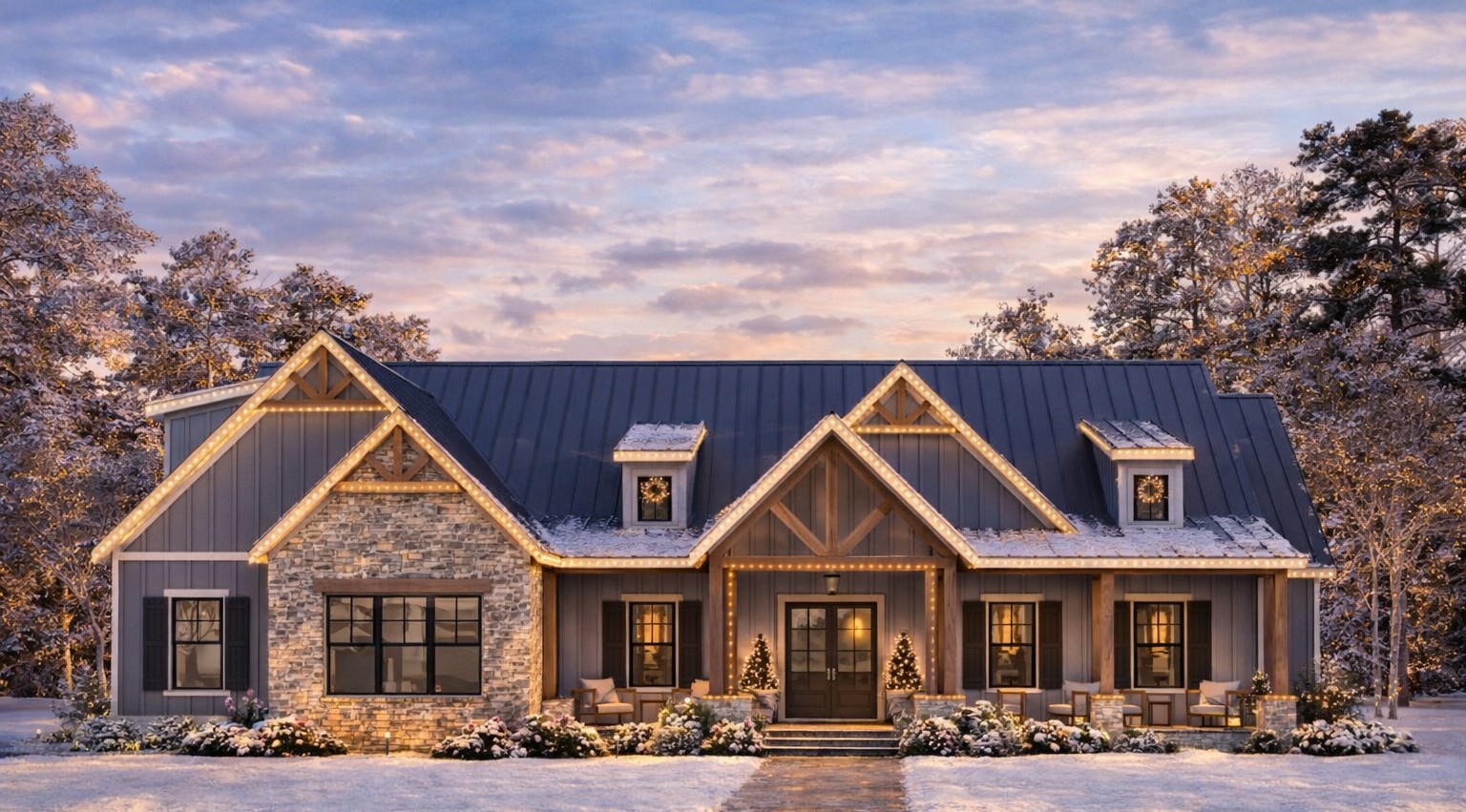 Thoughtfully positioned windows and balanced architectural elements give the façade a refined yet relaxed appeal. Whether set on a suburban lot or tucked into a rural landscape, this exterior radiates classic charm with a contemporary twist.