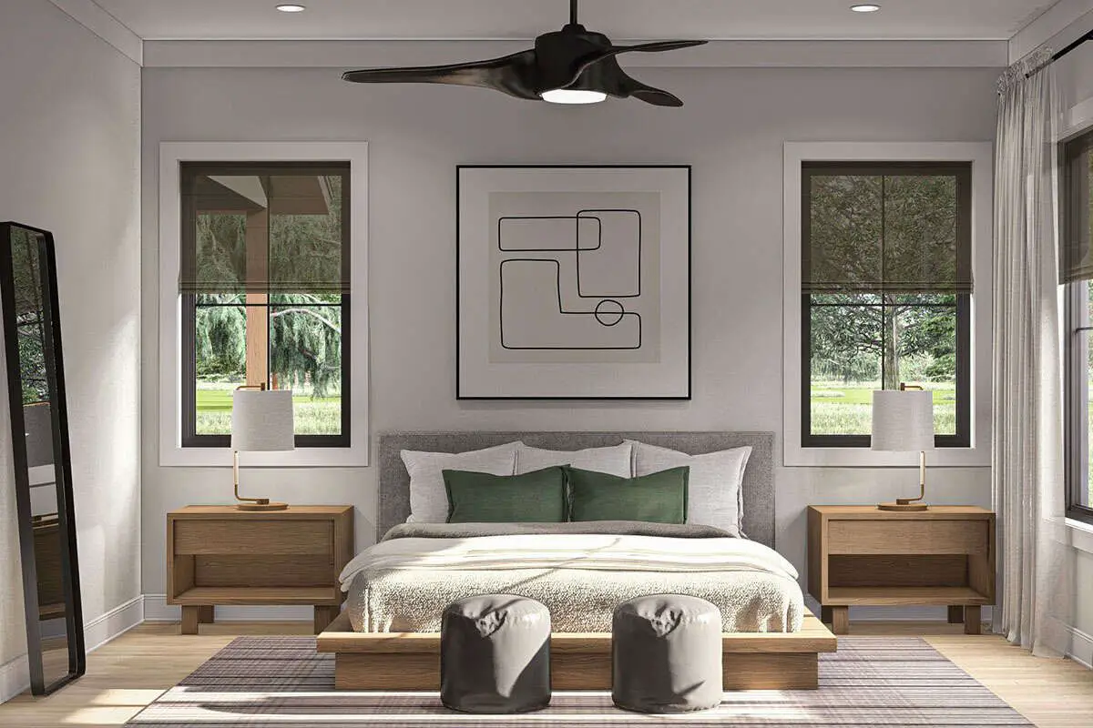 The two bedrooms are likely positioned for privacy—one functioning as the primary suite with an attached bath, the other ideal for guests, kids, or an office. Two full baths keep mornings moving smoothly.4