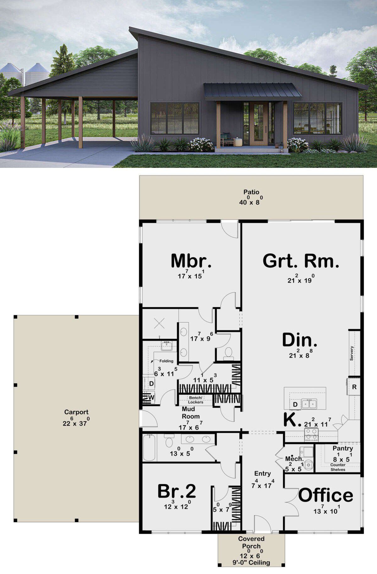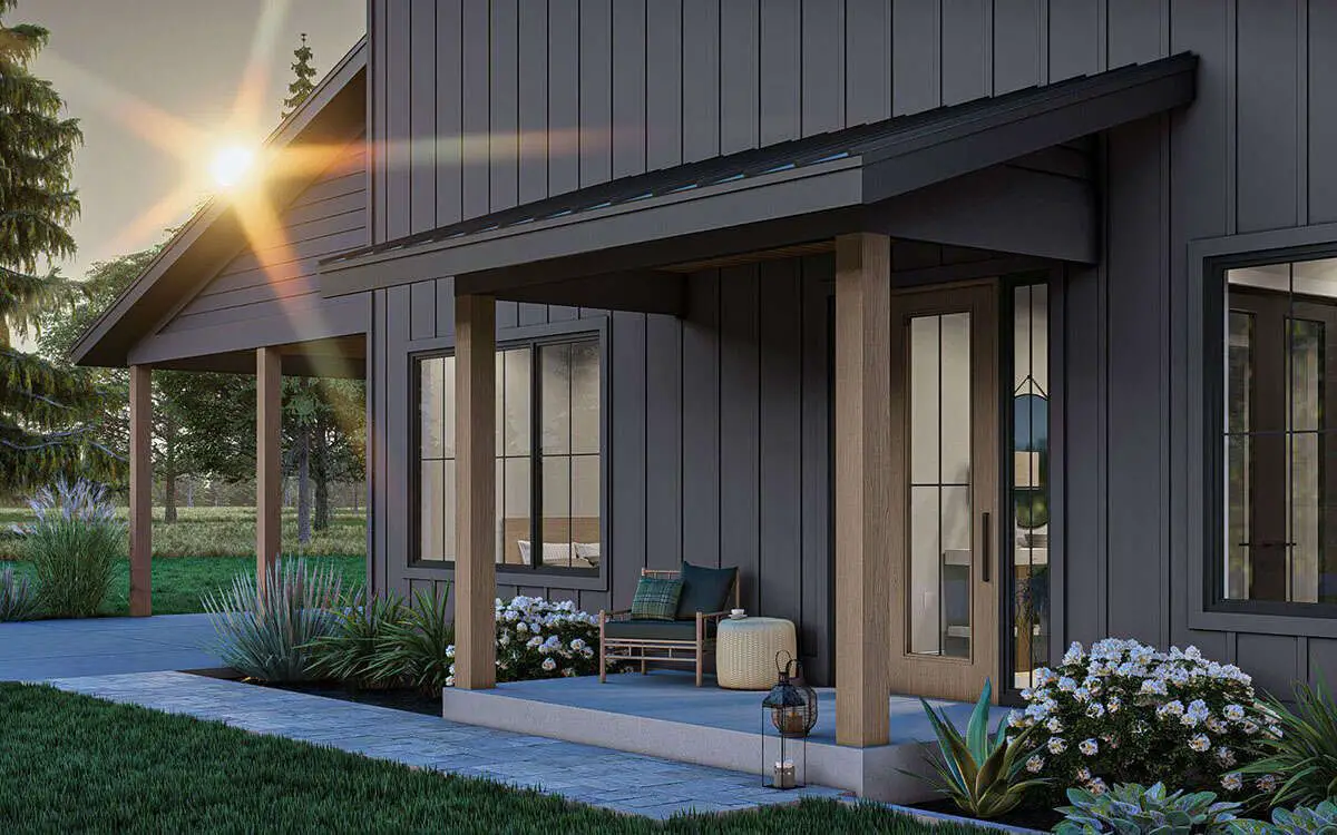 - Porch adds inviting charm without sacrificing privacy or footprint.