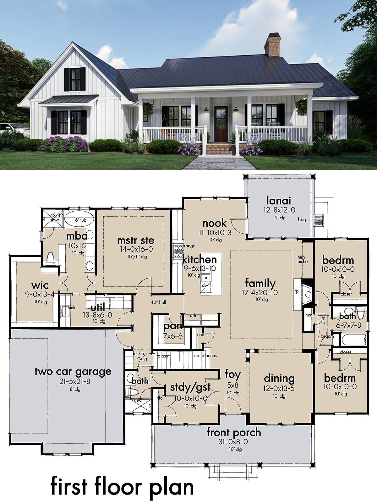 This cozy farmhouse plan delivers 2,192 sq ft on one level (with bonus loft space), offering 4 bedrooms, 3 full baths, and a 2-car garage.