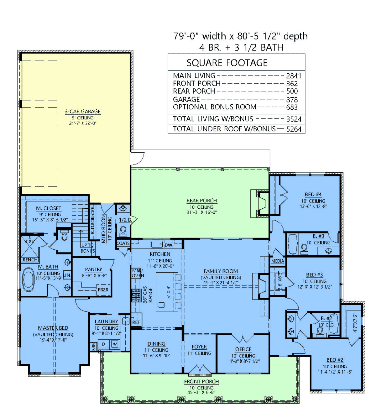 Upstairs above the 3-car garage is a bonus room (≈ 683 sq ft) that could serve as a media room, guest suite, game area—your call. Garage itself is ≈ 878 sq ft, plenty of space for vehicles and gear. 5