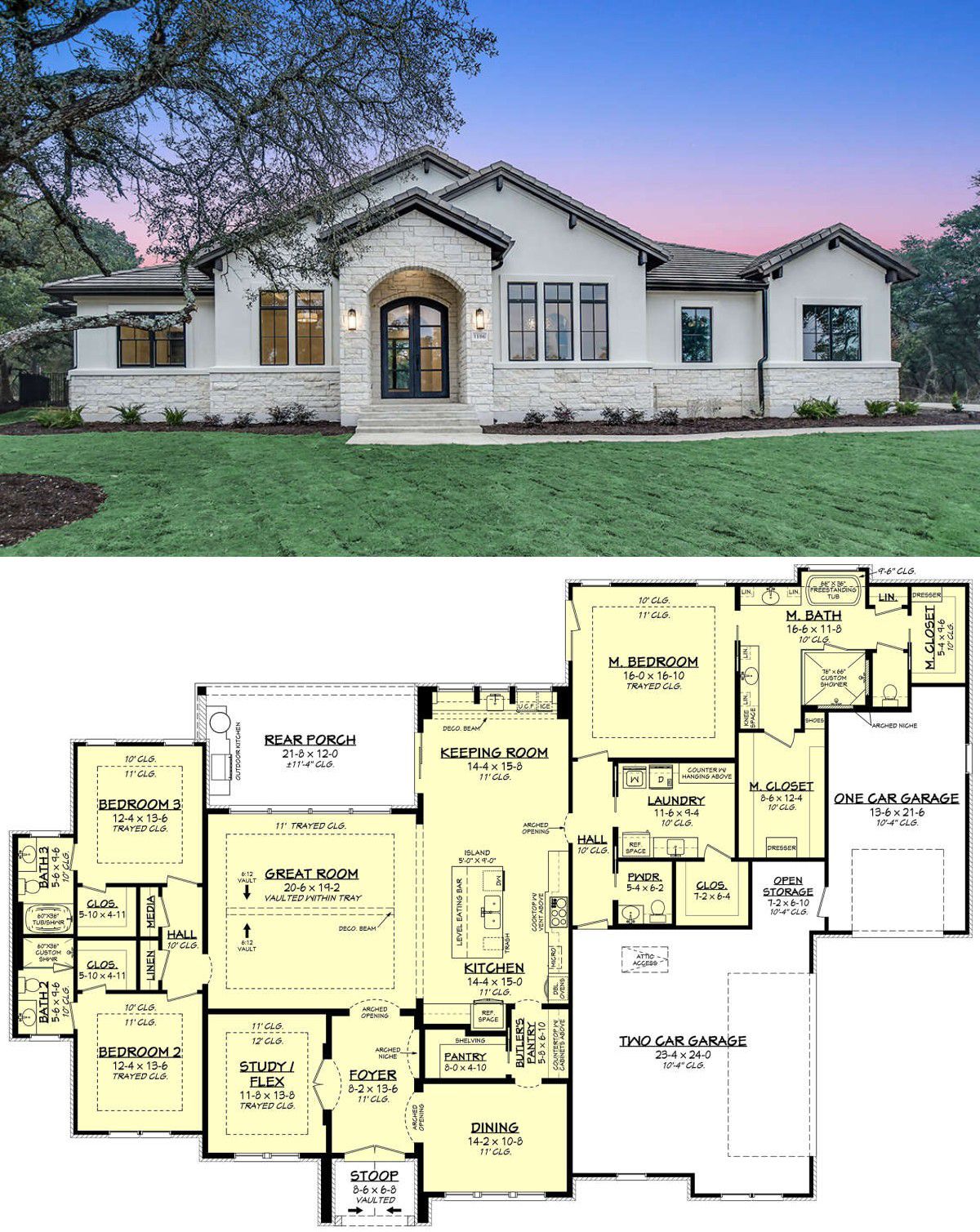 This one feels smart because it gives you luxury without overkill: just three bedrooms, but each with its own full bath (or nearly so), strong connection between indoor and outdoor, and a layout that supports family life comfortably. It’s ideal if you want elegant, spacious living on one level, with less upstairs pain—maintenance, stairs, etc.