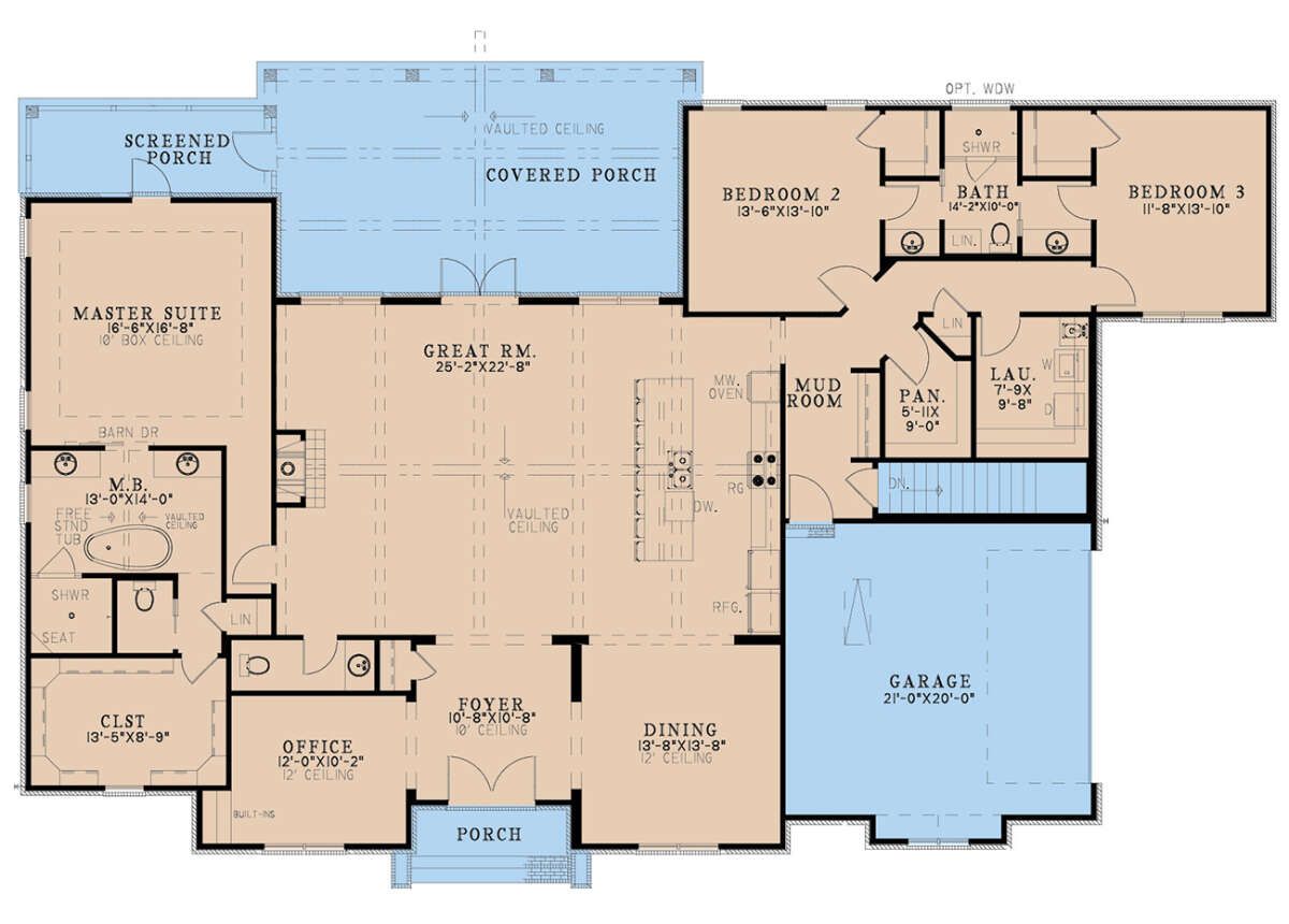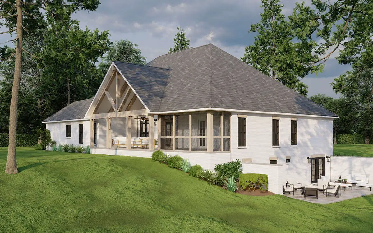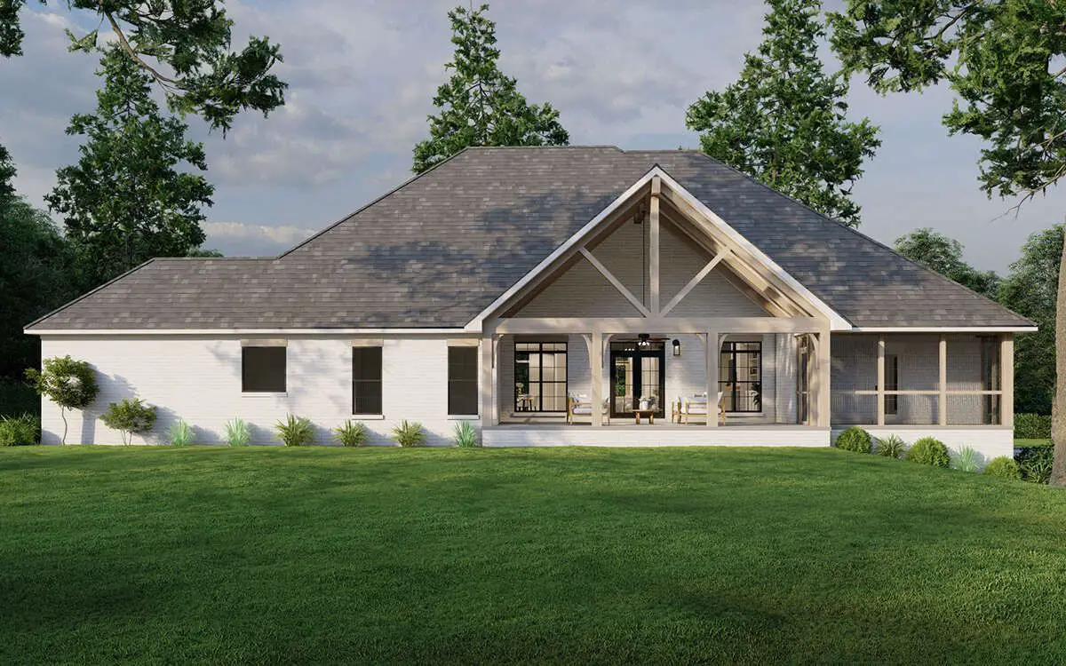This plan is ideal if you want enough space to spread out without going too large. The flexible bedroom count makes it useful as your needs change, and the covered porches give outdoor living without extra complex construction. It feels upscale, but not fussy.