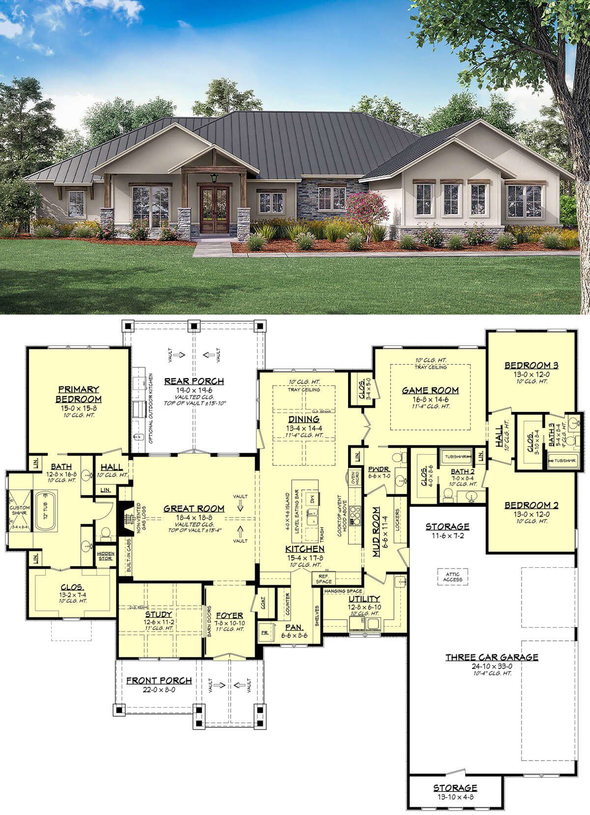 This plan strikes a smart balance: modest number of bedrooms but generous spaces to live, gather, and retreat. The split layout, versatile game room, and strong indoor-outdoor connection make it feel much larger than the numbers suggest. It’s elegant without excess, ready for both daily life and entertaining.