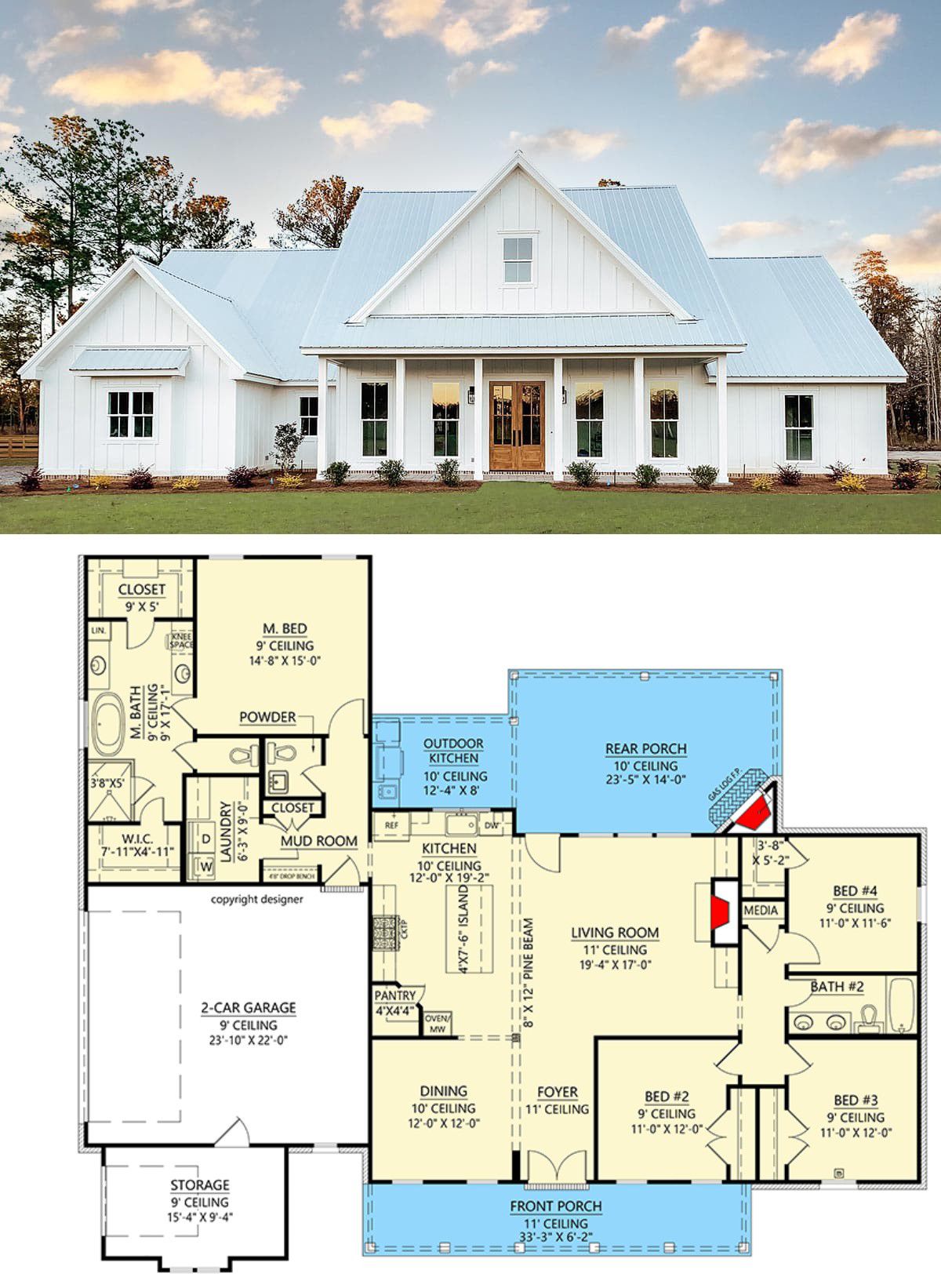- Style: Modern farmhouse, split-bed layout, grilling porch