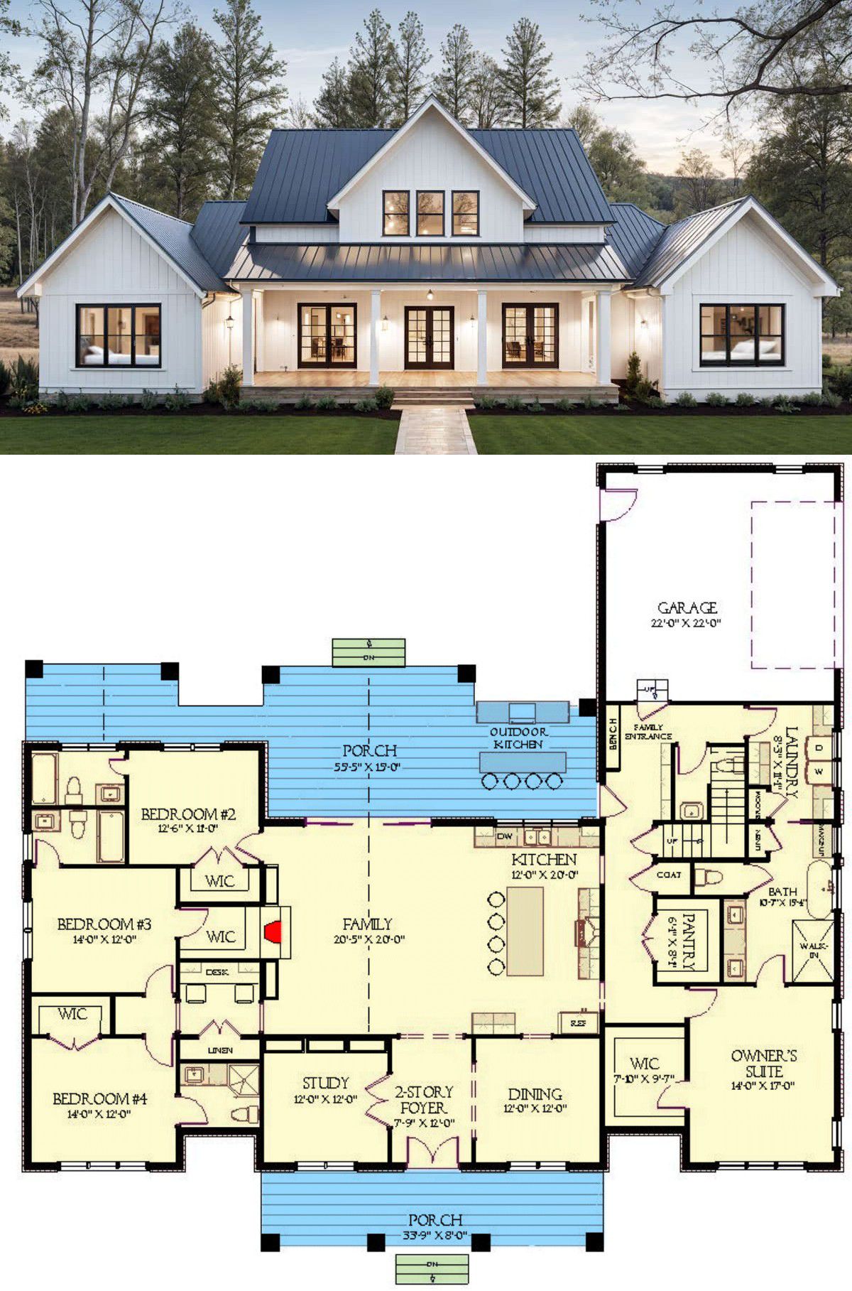 This modern farmhouse delivers about 3,003 sq ft of stylish, functional living, featuring 4 bedrooms, 3 full baths, a 3-car garage, and a **stunning outdoor kitchen + living area** designed for both entertaining and everyday pleasure. It blends crisp lines with warm touches and modern amenities with ease.
