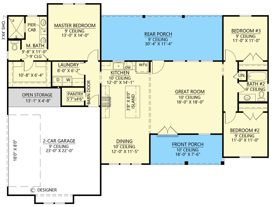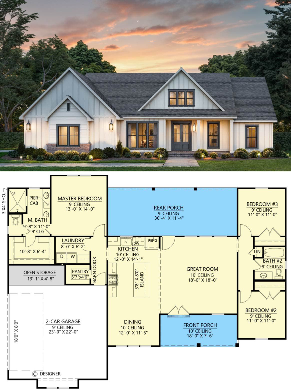 - Outdoor living is emphasized via large rear porch + front porch (together ~480 sq ft). 11