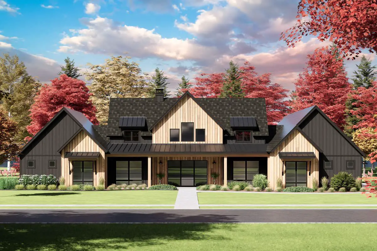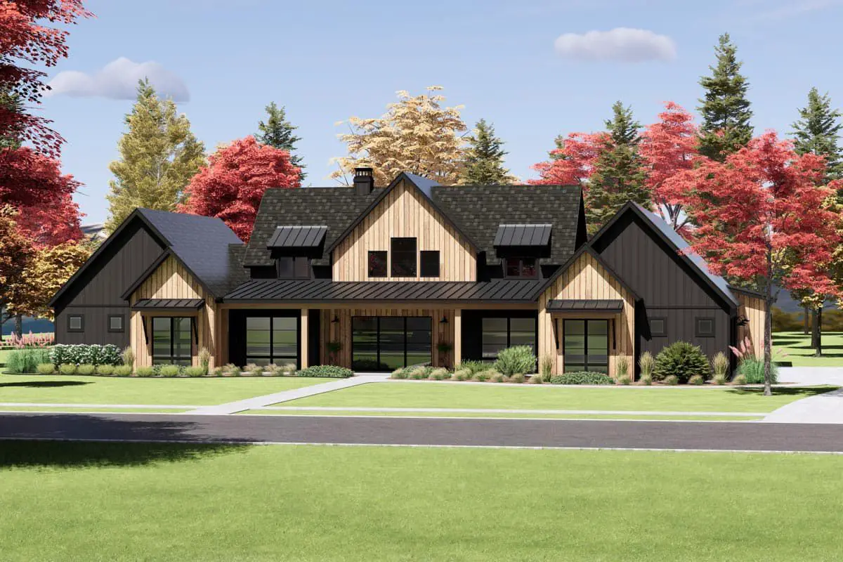This design feels big without being overwhelming. It gives you luxury where it counts—privacy for the master suite, built-in storage, large porches, open gathering areas—while keeping all the living on one floor. If you want comfort, style, and future adaptability, this plan delivers in rustic modern fashion.