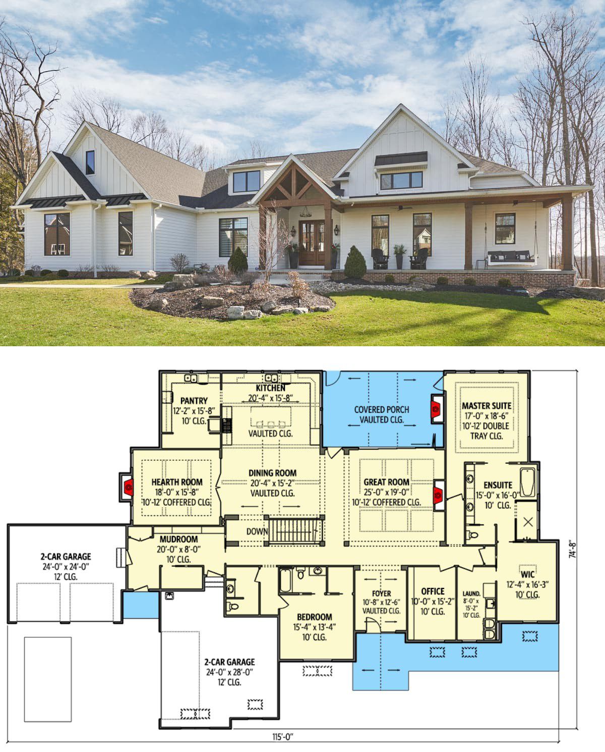 On the outside, timeless New American touches meet modern utility—mixes of siding, smart roof lines, and a bold yet welcoming entrance.