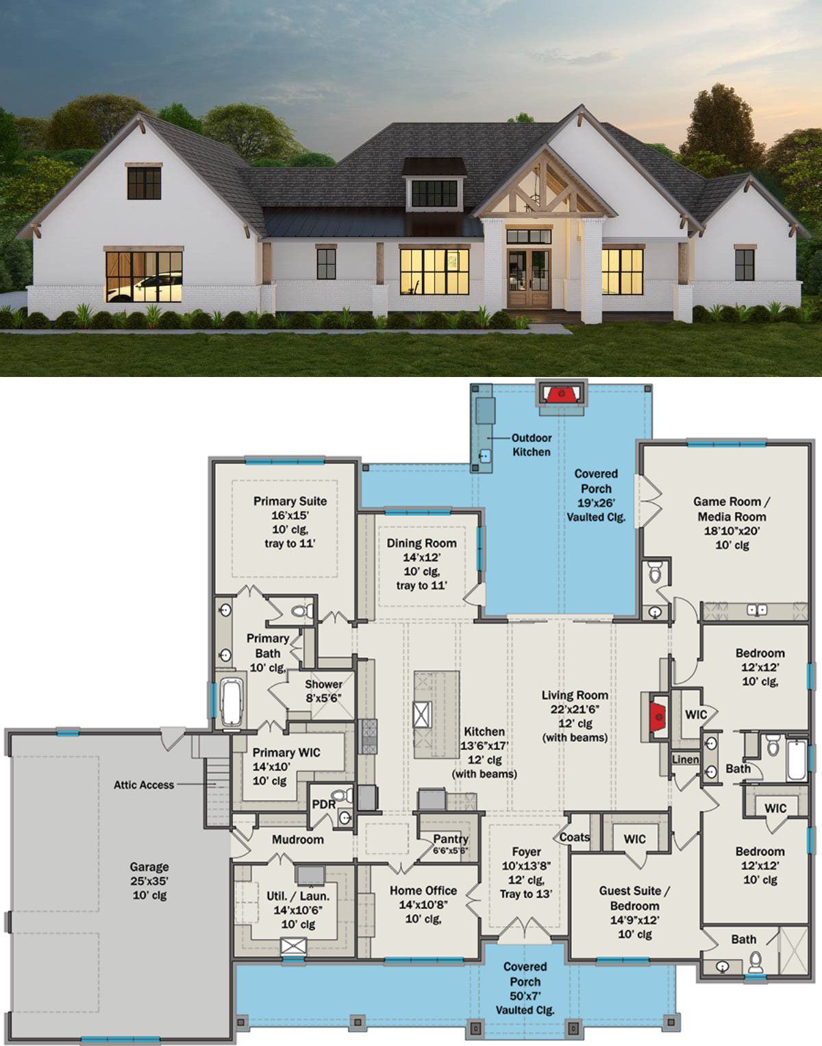 Decorative details like dormers and a broad porch elevate the look, while the layout stays grounded in plain usability. It’s a home that feels timeless but lives in the now.