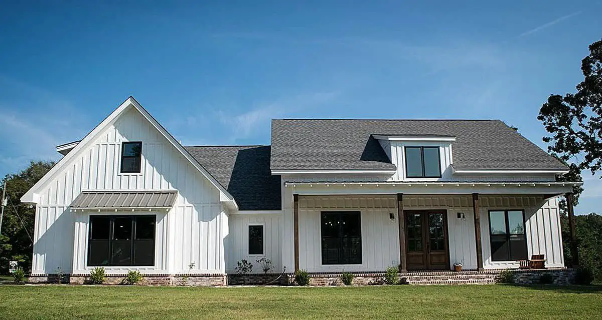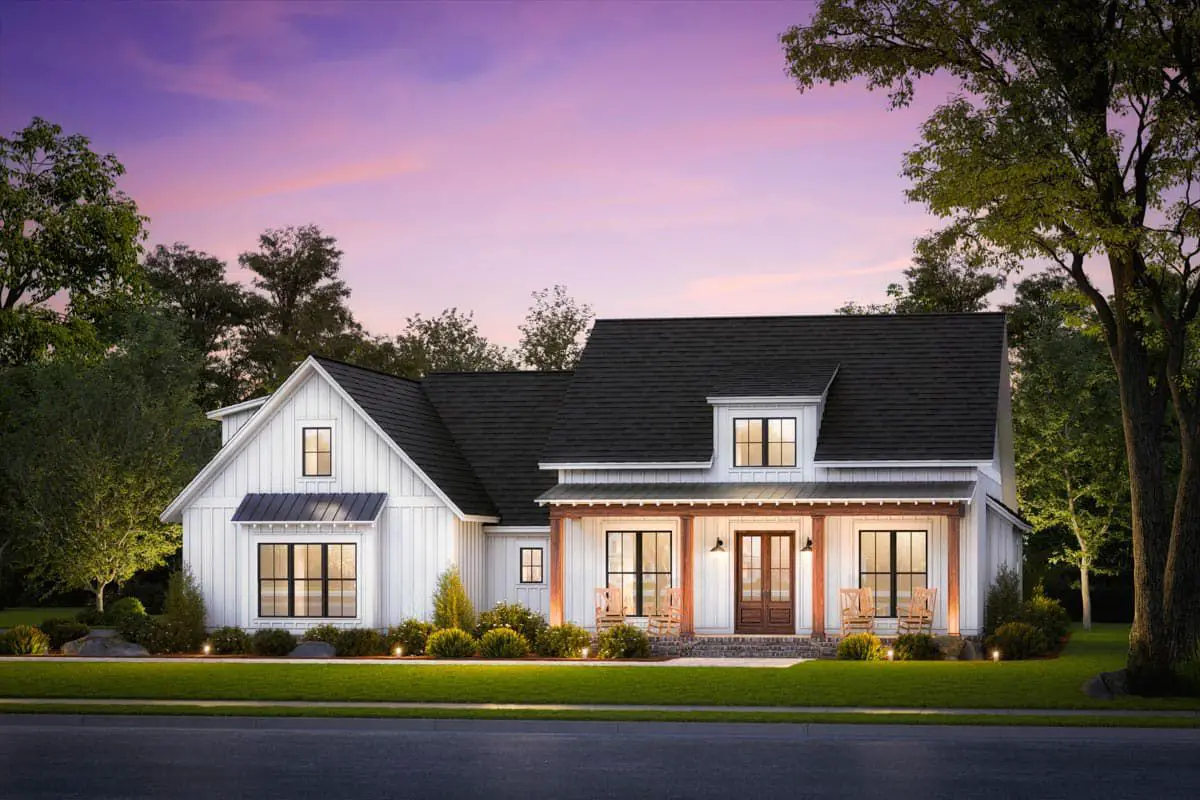 If you’re after modern farmhouse flavor without breaking the bank, this plan brings ~2,077 sq ft of thoughtful living space.
