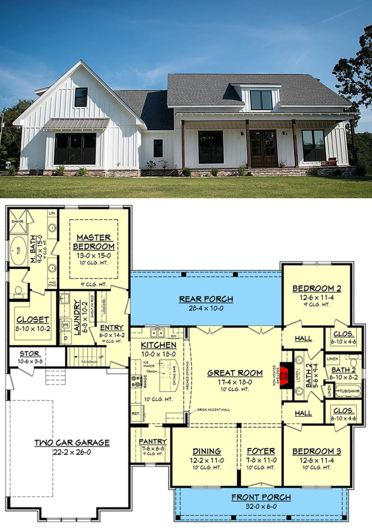 It’s got enough style to feel elevated, enough flexibility to grow with you, and enough budget savvy to make sense. With walk-in closets, bonus room, solid porch spaces, and modern farmhouse touches, this layout gives more than its size suggests.
