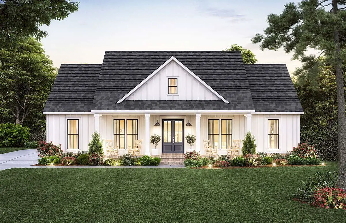 A full-width front porch invites you to linger, and vertical siding with subtle trim gives that classic, clean country appeal. The relaxed façade speaks of home long before you step inside. 2