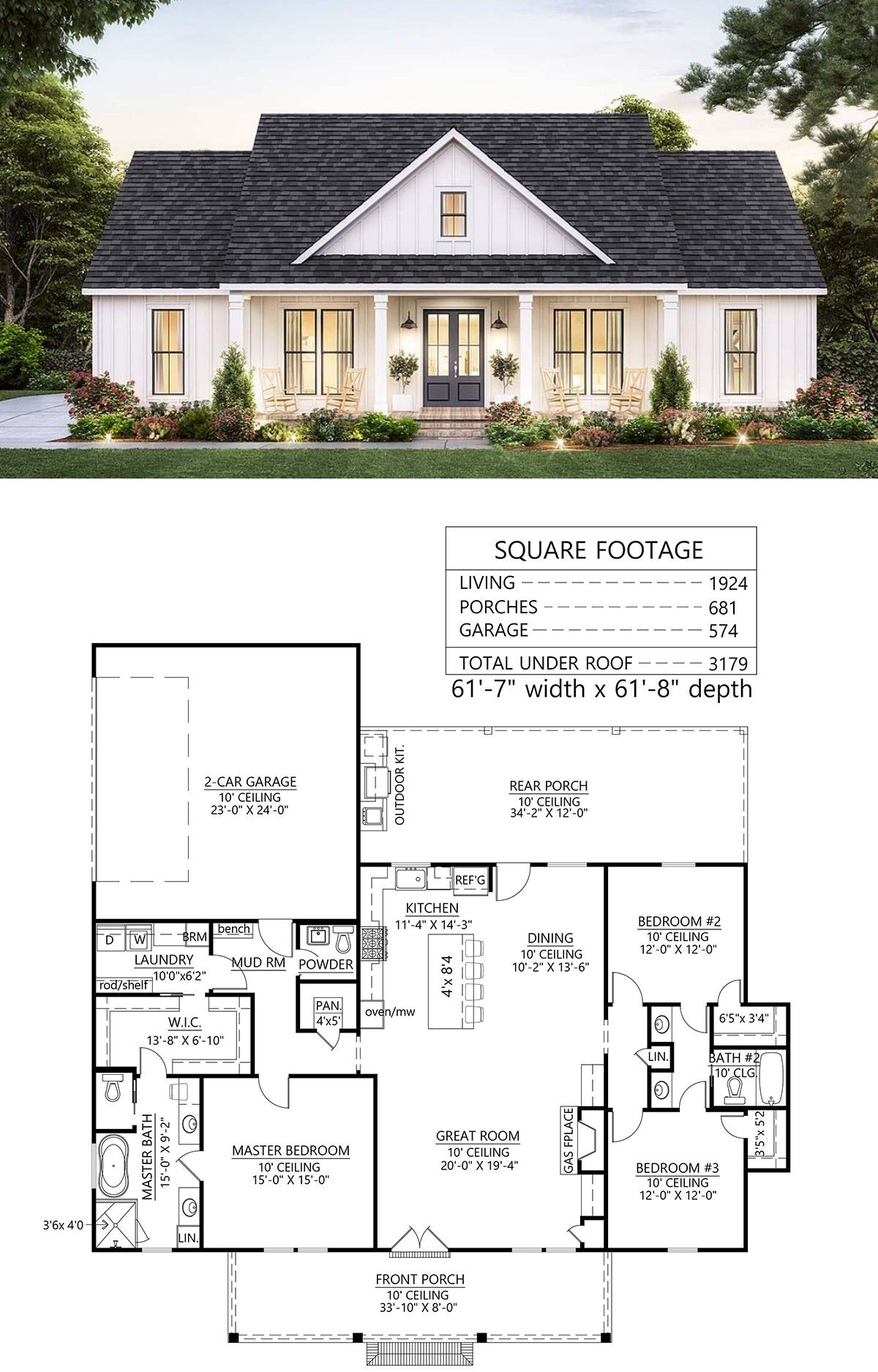 This warm “Country-Craftsman / New American” design delivers about 1,924 sq ft of comfortable living space, including 3 bedrooms, 2.5 baths, a 2-car garage, and features like a walk-in pantry, mudroom, and even an **outdoor kitchen**. 1