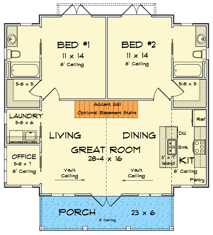 - Great Room: Center of household life, with easy views to kitchen and dining.
