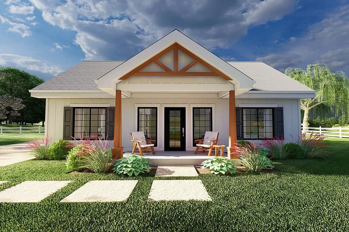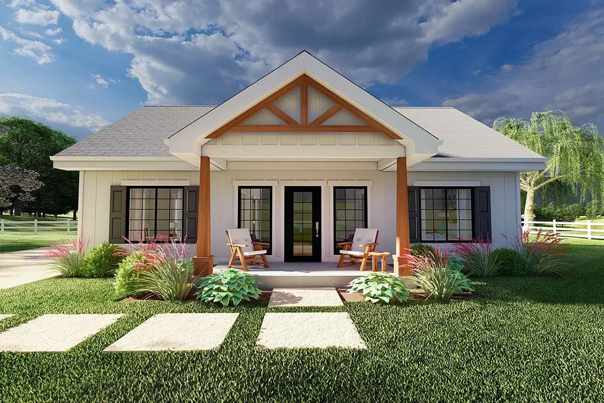 A modest front porch adds charm and function—space for a couple of chairs, a morning cup, or a casual welcome spot. It helps extend the livable area without adding to the interior footprint.6