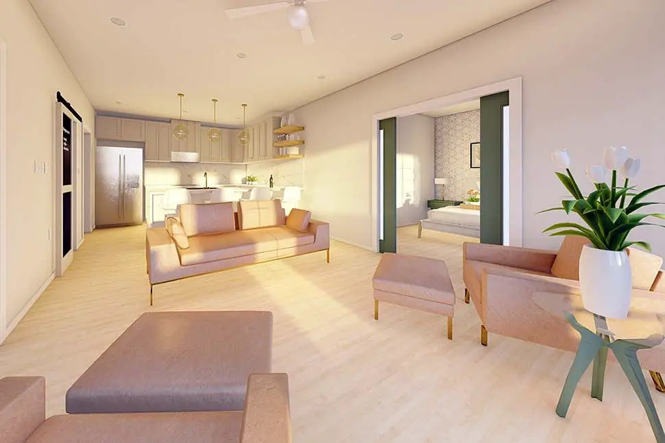 Step inside and you’ll find a living room that flows into the kitchen, with sightlines that keep connection even in a small footprint. The design emphasizes bright, uncluttered space over wasted square footage.3