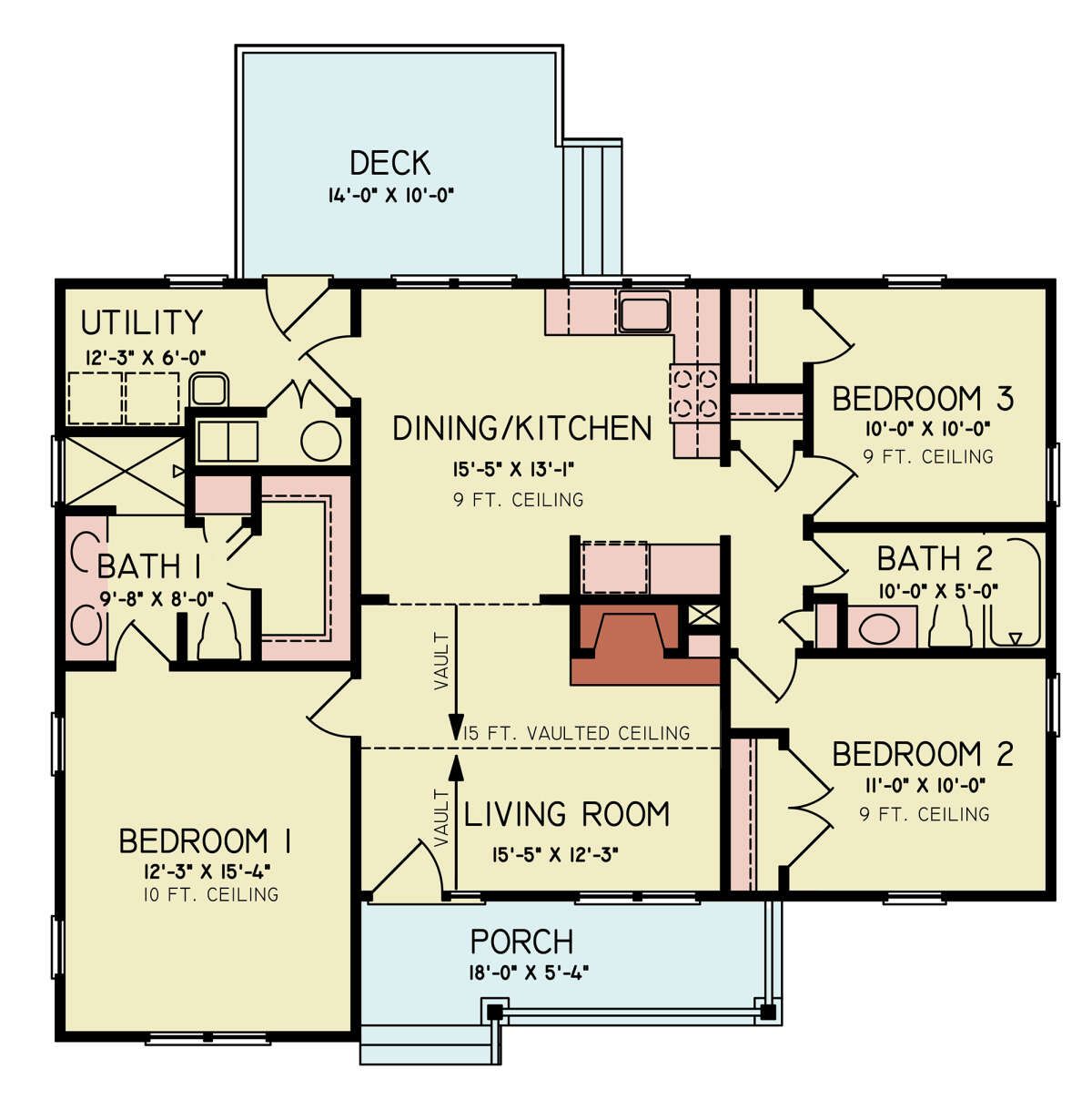 With 3 bedrooms and 2 full baths, this plan blends warm cottage appeal and efficient layout—perfect for a small family, downsizing, or a charming vacation home.
