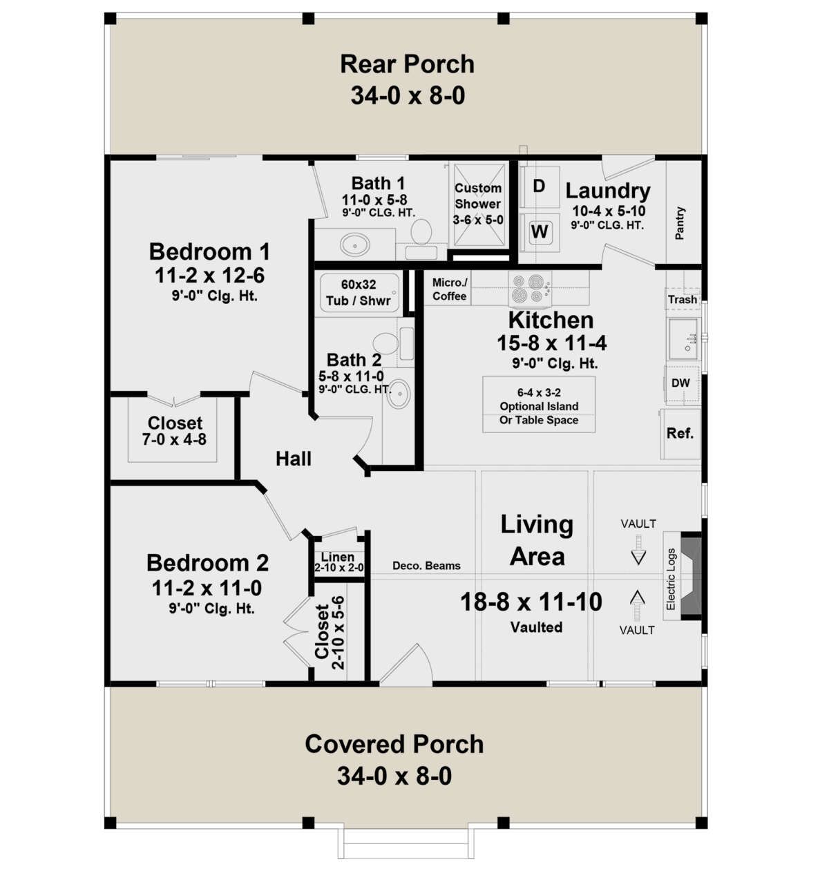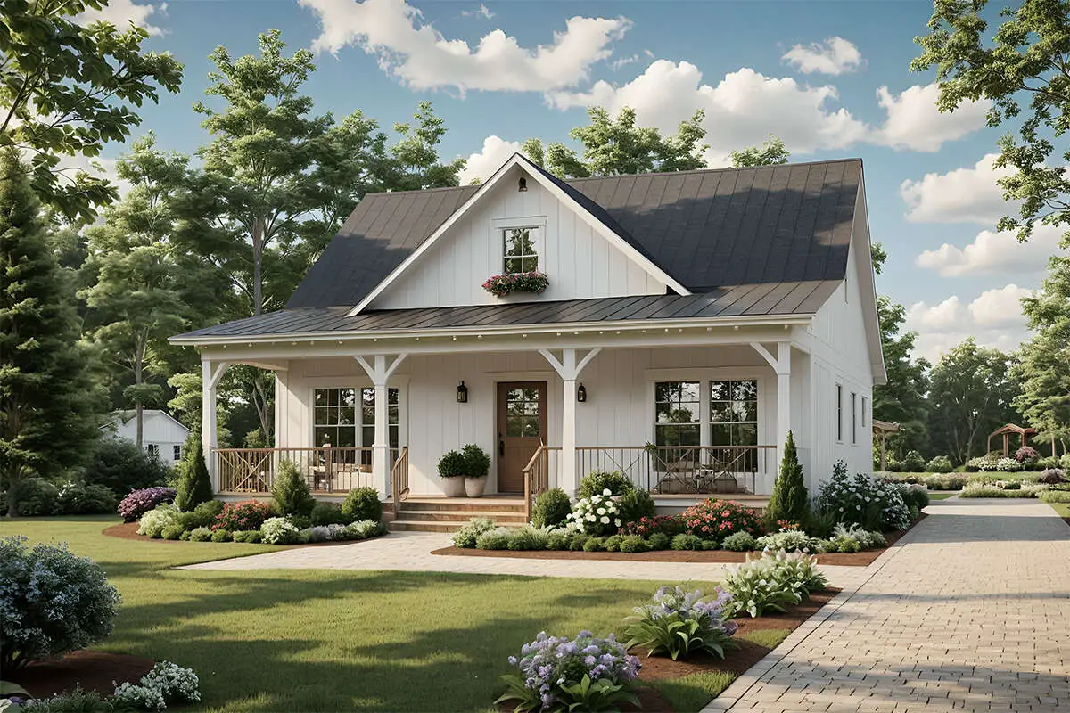 This home shows that you don’t need a huge footprint to have functionality and aesthetic appeal. The open layout keeps it airy. The split bedrooms give privacy. The large porches provide room to stretch outside. The simplicity helps cut down wasted space—no excessive corridors or awkward corners.