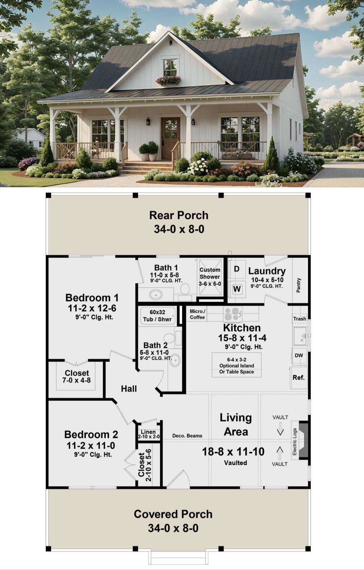 Come on in! This modern farmhouse packs a lot of charm and functionality into a compact footprint. With 1,020 square feet, 2 bedrooms, and 2 full bathrooms, it’s ideal for couples, small families, or anyone who wants stylish simplicity. Let’s wander room to room and see what makes this little house great.