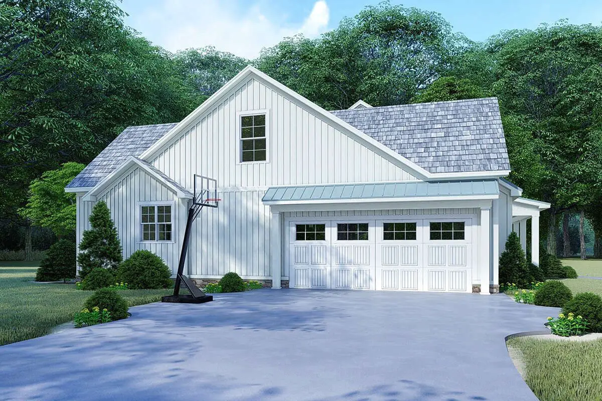 Clean lines, board-and-batten siding, and modern farmhouse elements create visual charm. The façade blends traditional form with contemporary accents—balanced, welcoming, and not overdone. 1