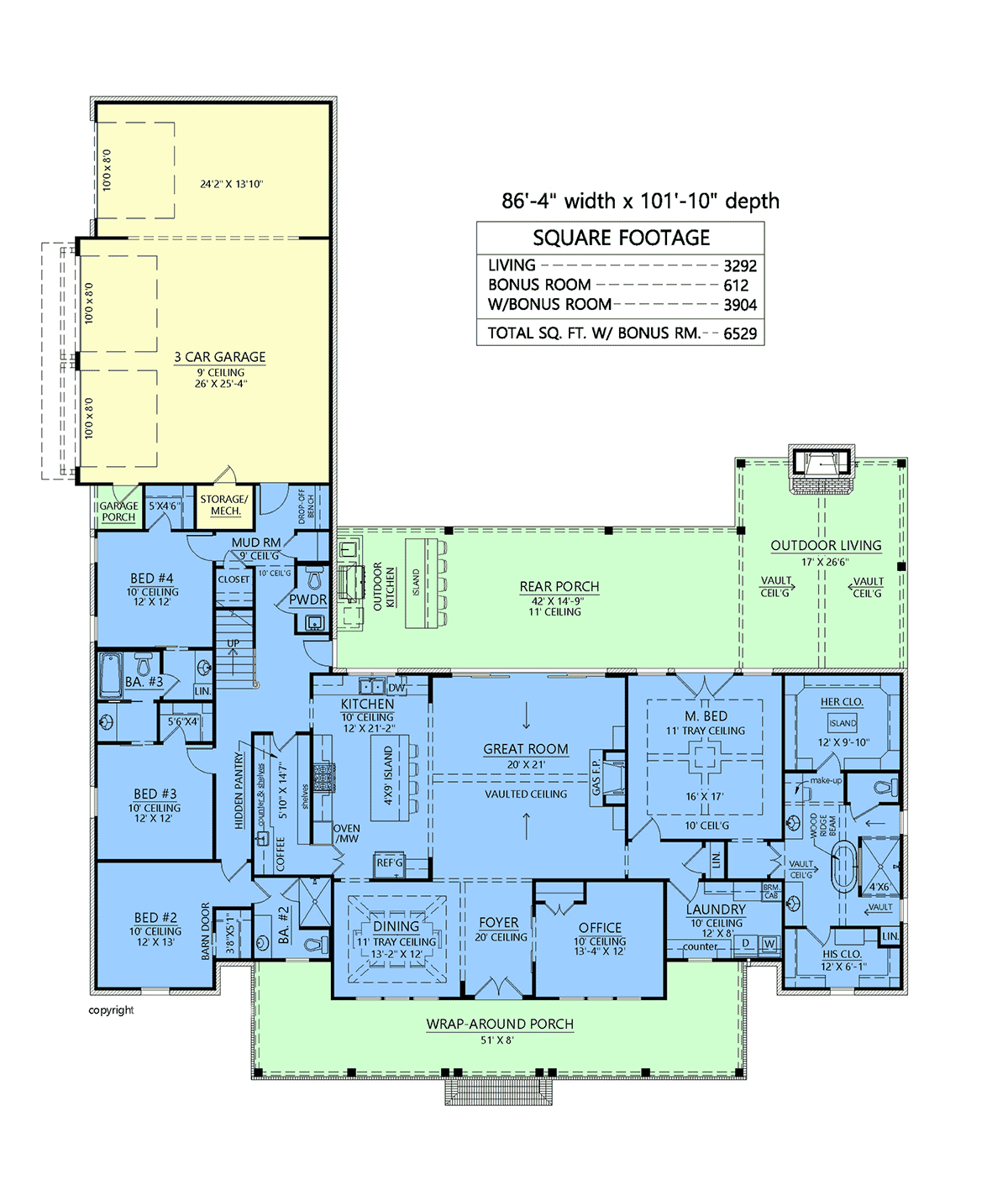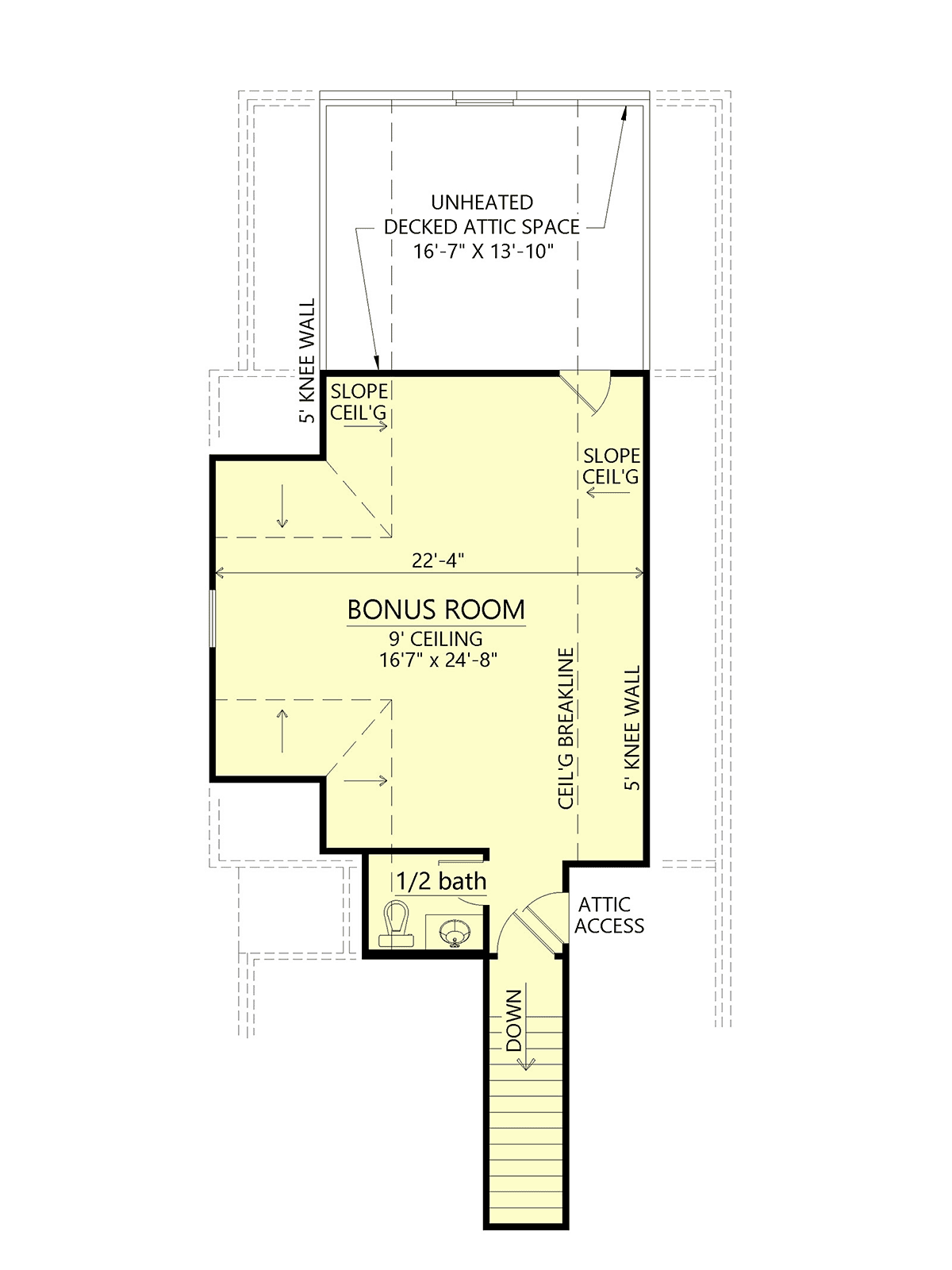 - 10′ main ceiling height, 9′ ceiling in bonus area. 6