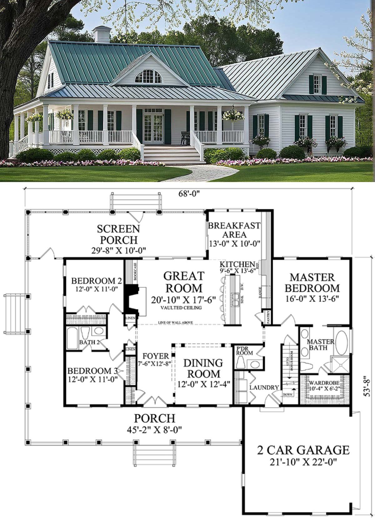 With its classic southern style and a bold wrap-around porch, this home makes a warm first impression—day or night. 2