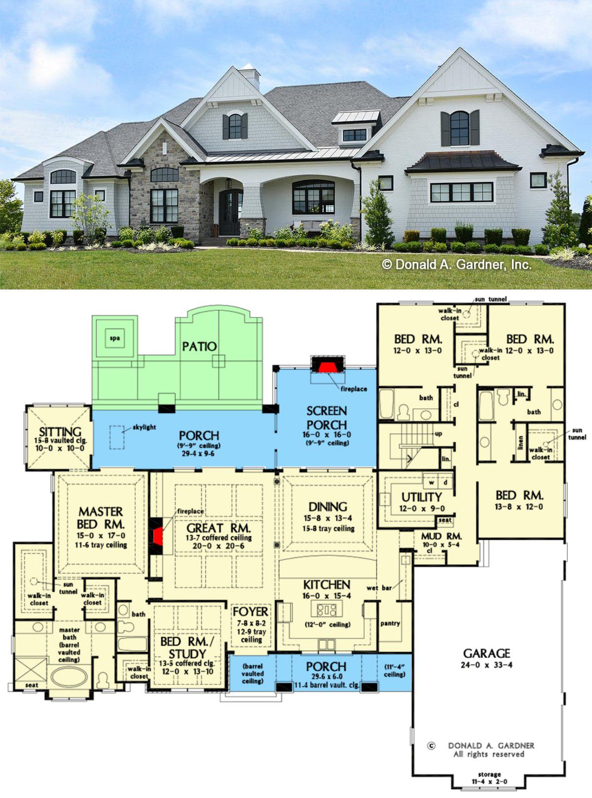This generous one-level Craftsman offers about 3,642 sq ft of thoughtfully designed living space. With 4–5 bedrooms, 3 full baths, a 3-car garage, and a large screened porch, it balances country warmth with functional modern living.
