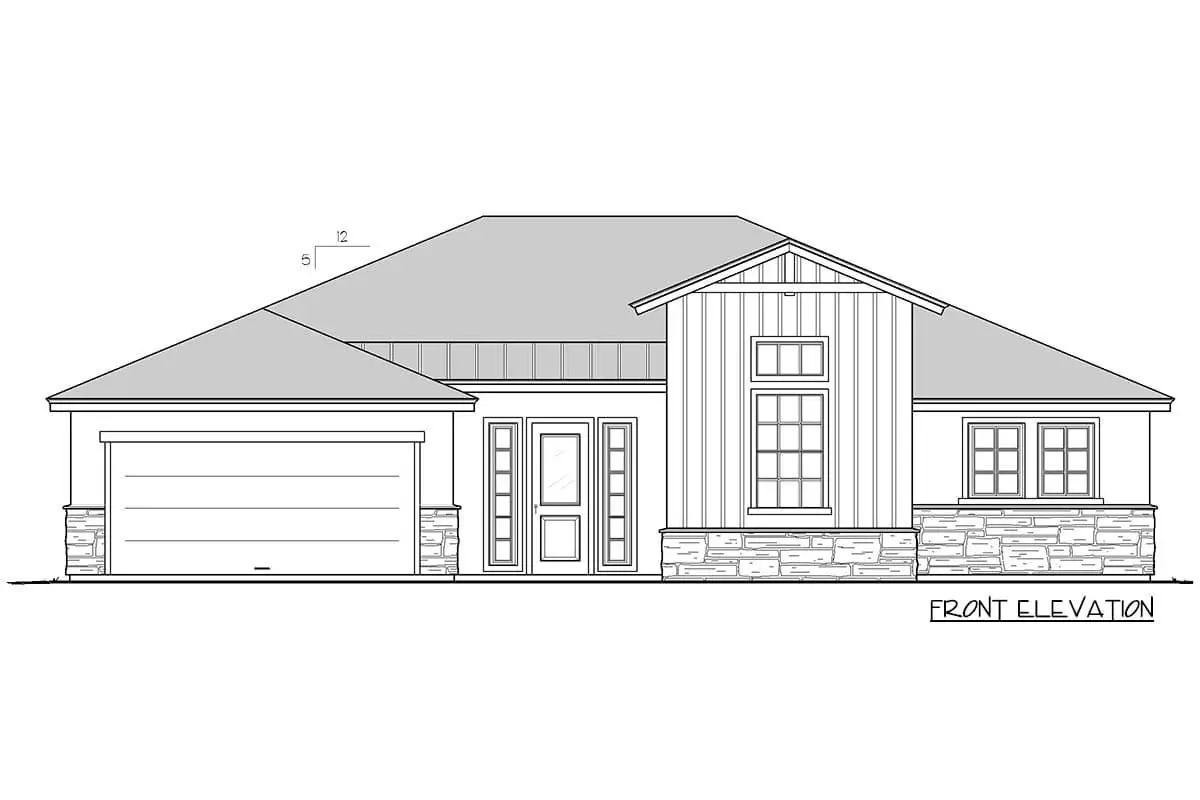 - Style: Prairie ranch with clean horizontal emphasis and natural stone accents