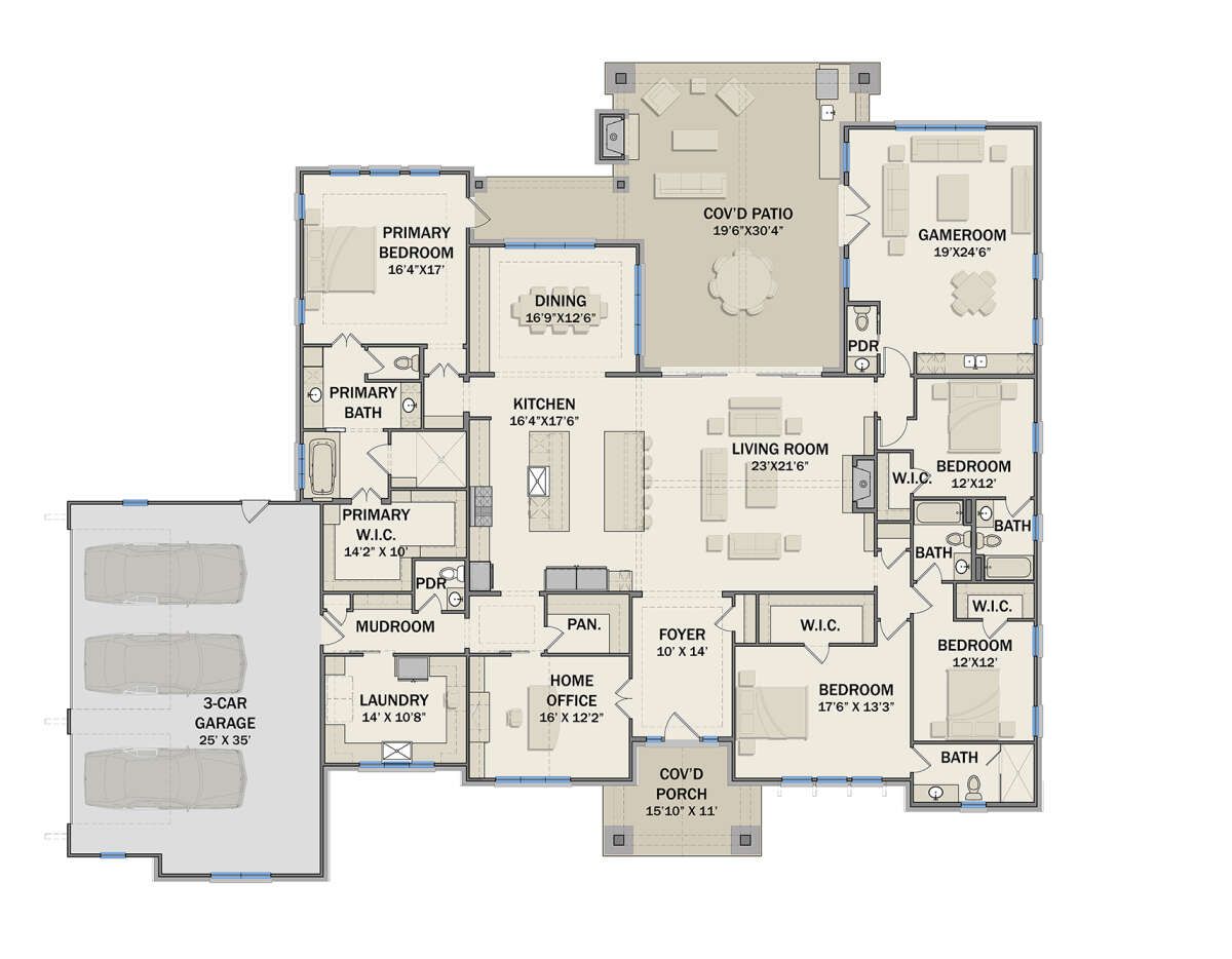A 3-car side entry garage provides ample space for vehicles and storage. The outdoor living area is large and designed to feel like an extension of the indoor living space—great for entertaining or relaxing. 6
